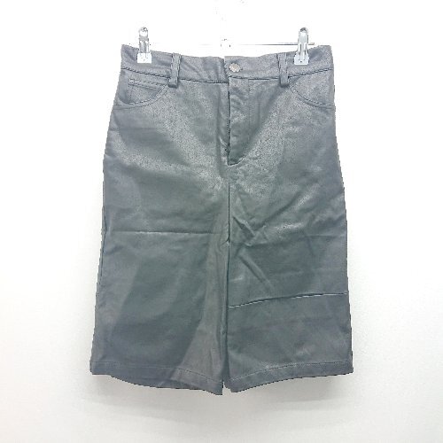 ◇ JEANASIS カジュアル レザー 皮 ハード モノトーン バックゴム ハーフパンツ サイズF ブラック レディース E