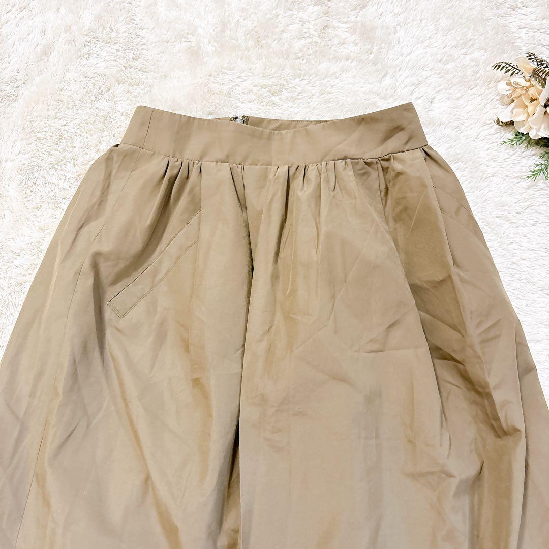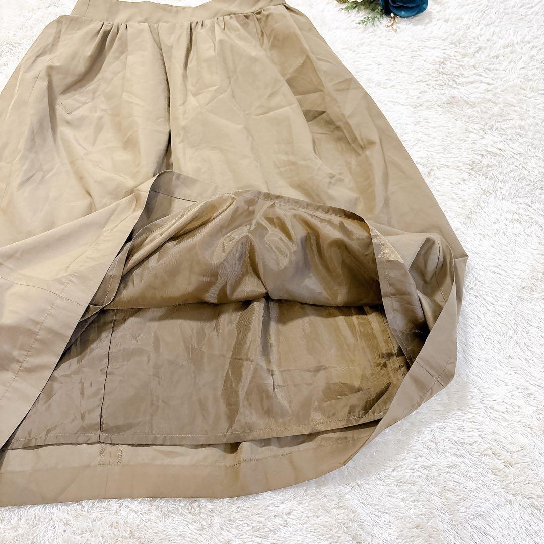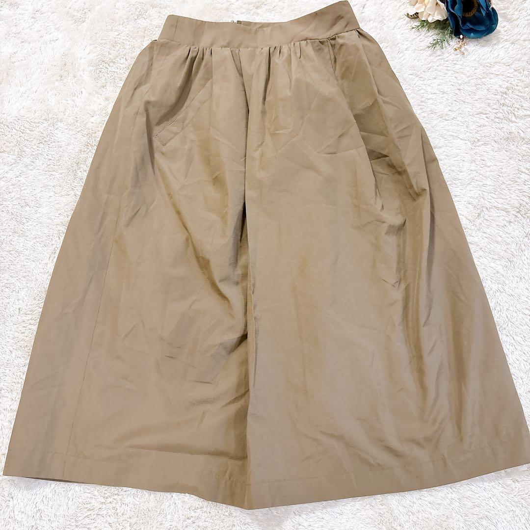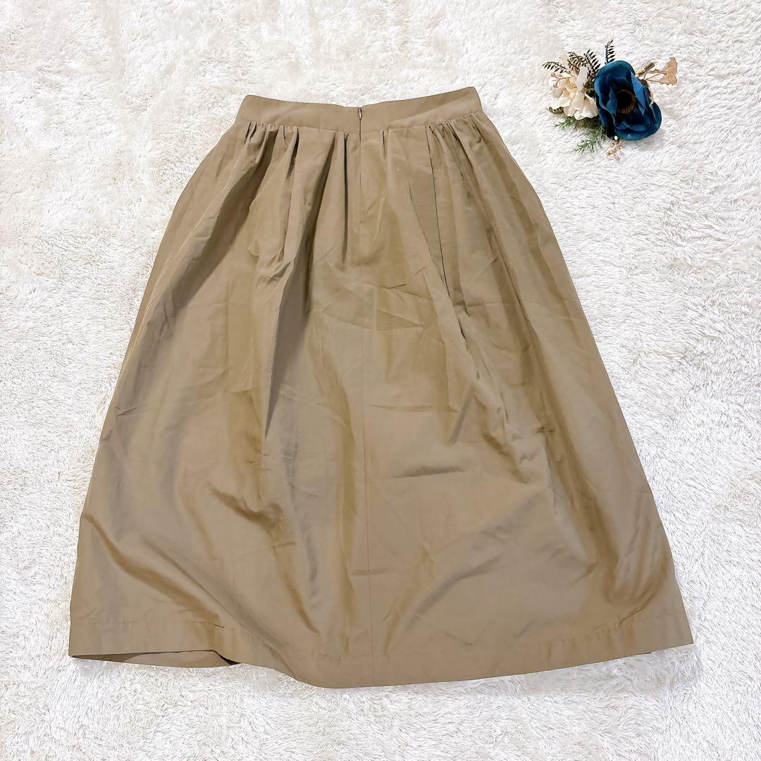 Blue de Bresseタックフレアースカート ミドル丈36 カーキ 534E28