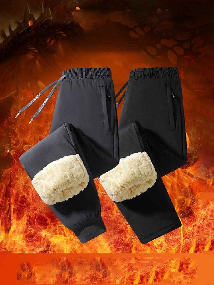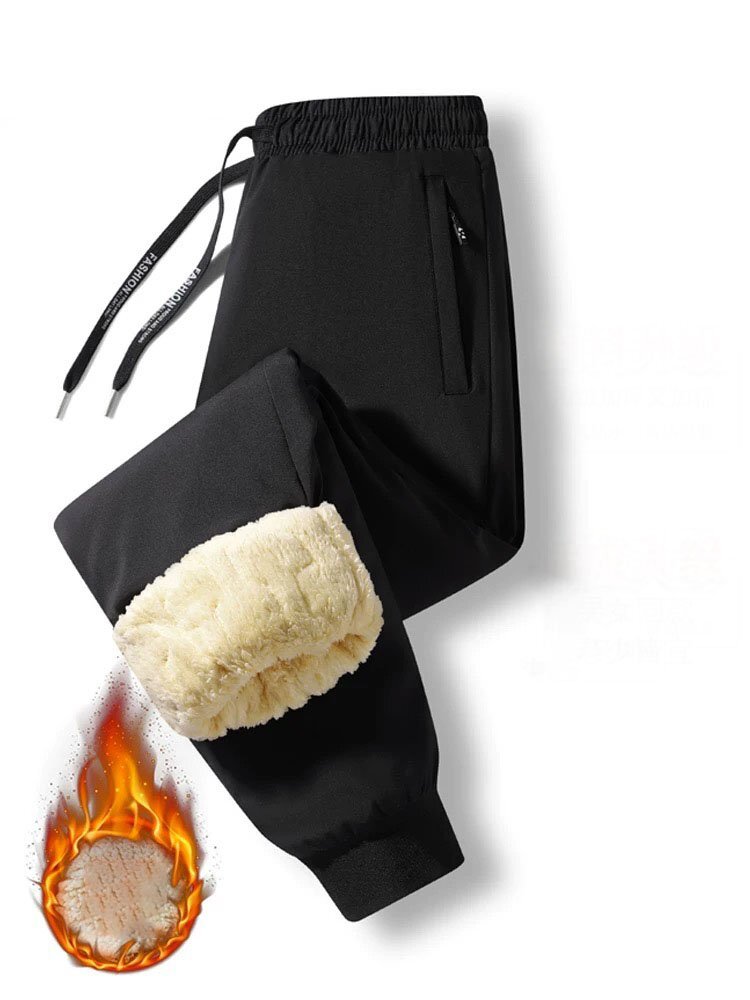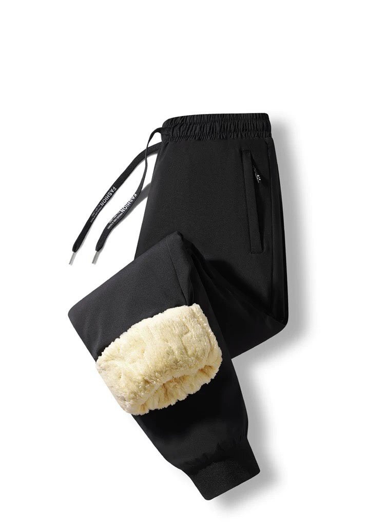 ロングパンツ ズボン 裏起毛 厚手 防寒 無地 おしゃれ ジョガーパンツ スポーツ カジュアル 冬用 ブラック 2XL/52サイズ sfz13.4