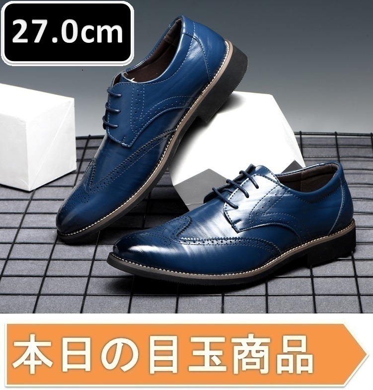本日の目玉 ☆ メンズ ビジネス レザー シューズ ブルー サイズ 27.0cm 革靴 靴 カジュアル 屈曲性 通勤 軽量 【230】
