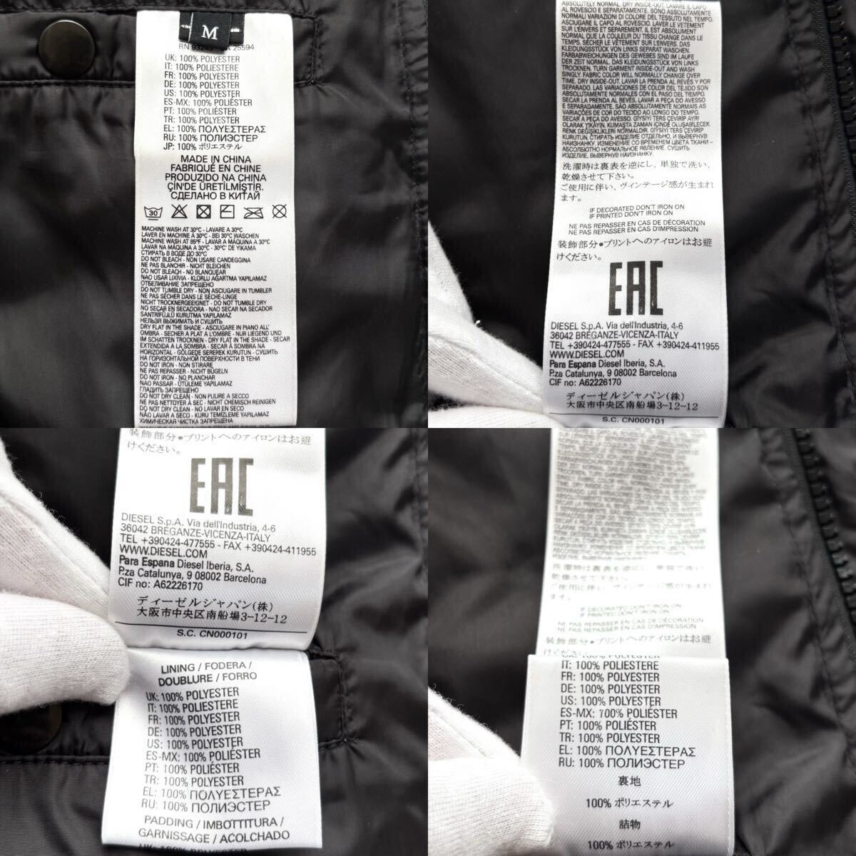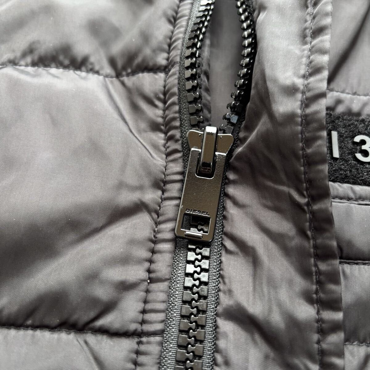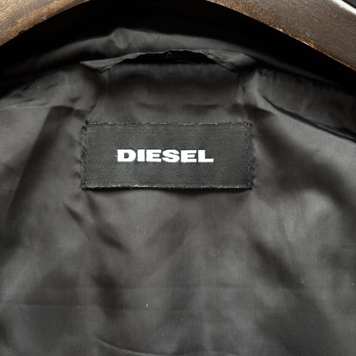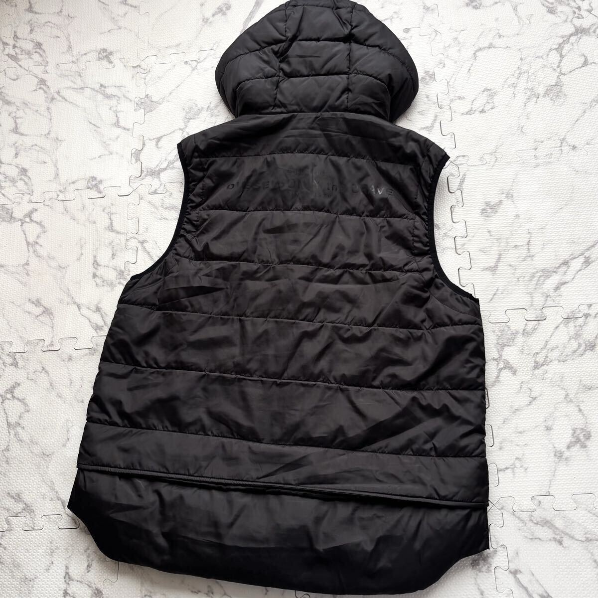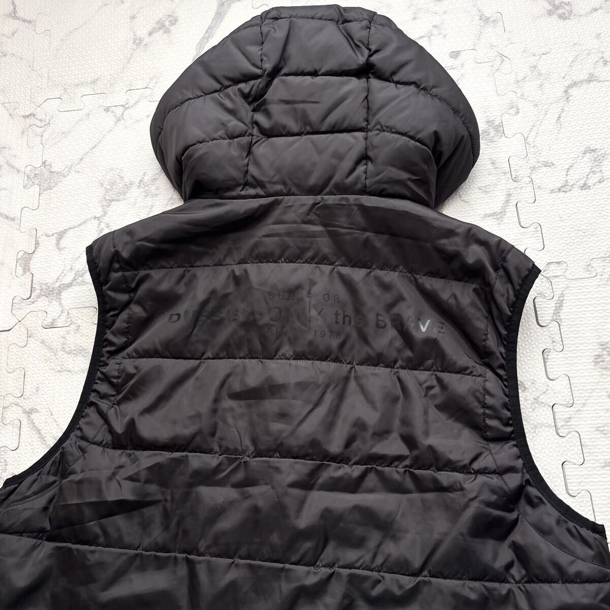 極美品/L相当●DIESEL ディーゼル 中綿 ダウンベスト ジップアップ パーカー フード ジャケット 胸元ワッペン ブラック 黒 メンズ 軽量◎