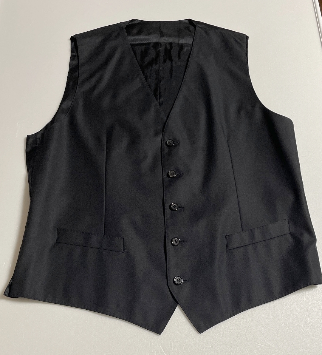 〇ベスト:シングル、5つボタン ・肩幅:38cm ・身幅:53.5cm ・着丈:前69cm、後ろ61cm