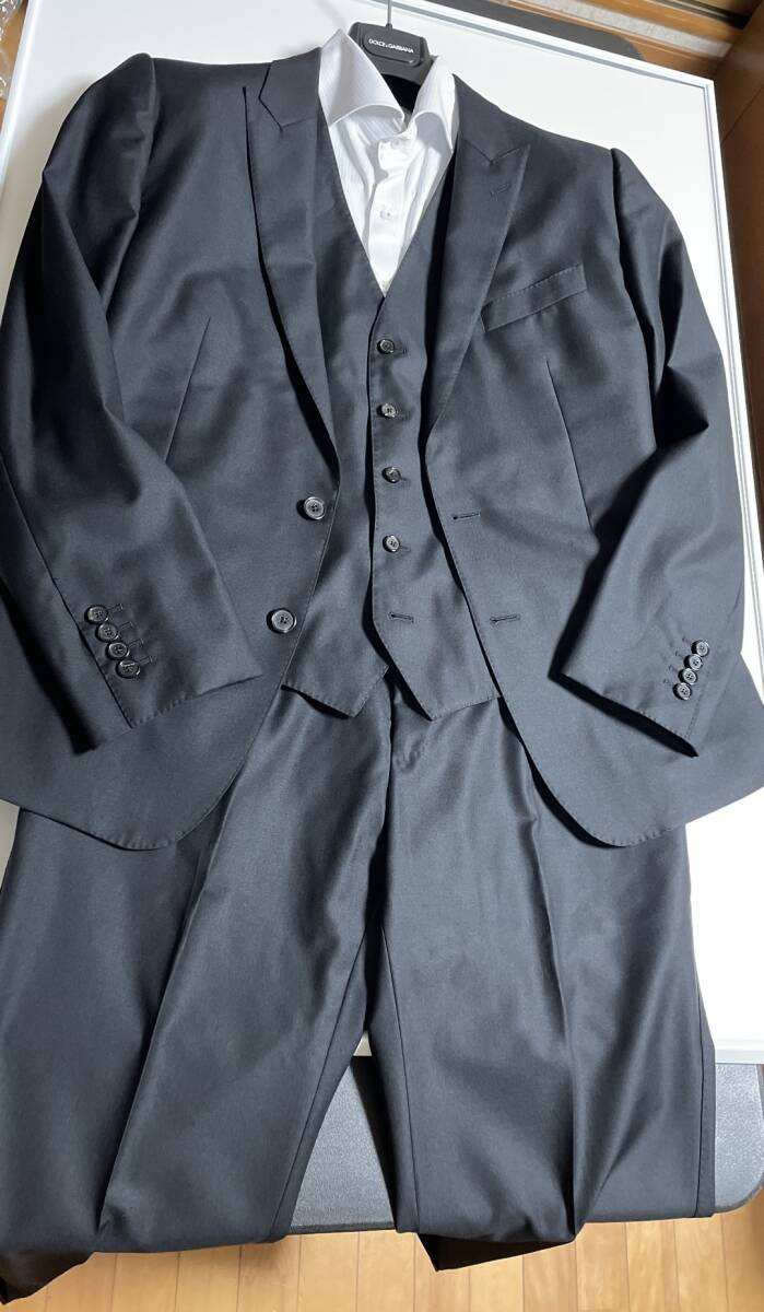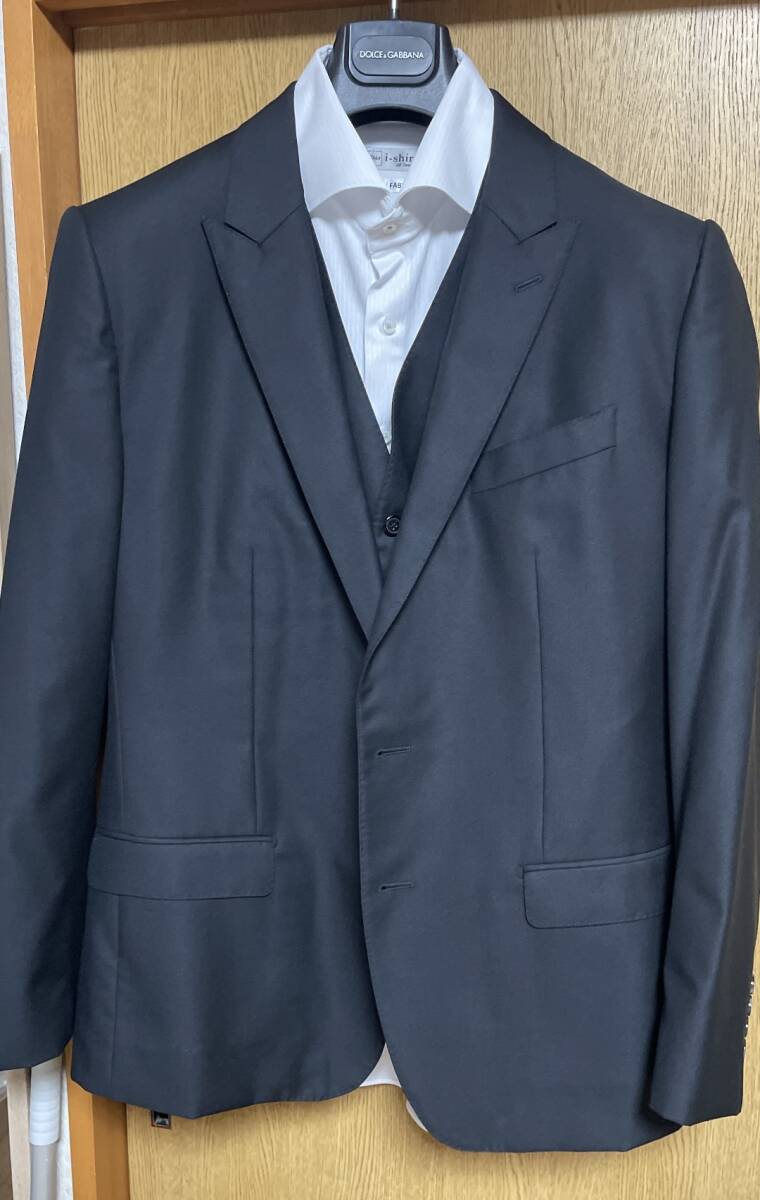新品購入、一度のみ着用の美品です。 クリーニング済みです。 サイズ表記:各52 〇ジャケット:ピークドラベル、シングル、2つボタン、総裏、センターベント、袖4つボタン