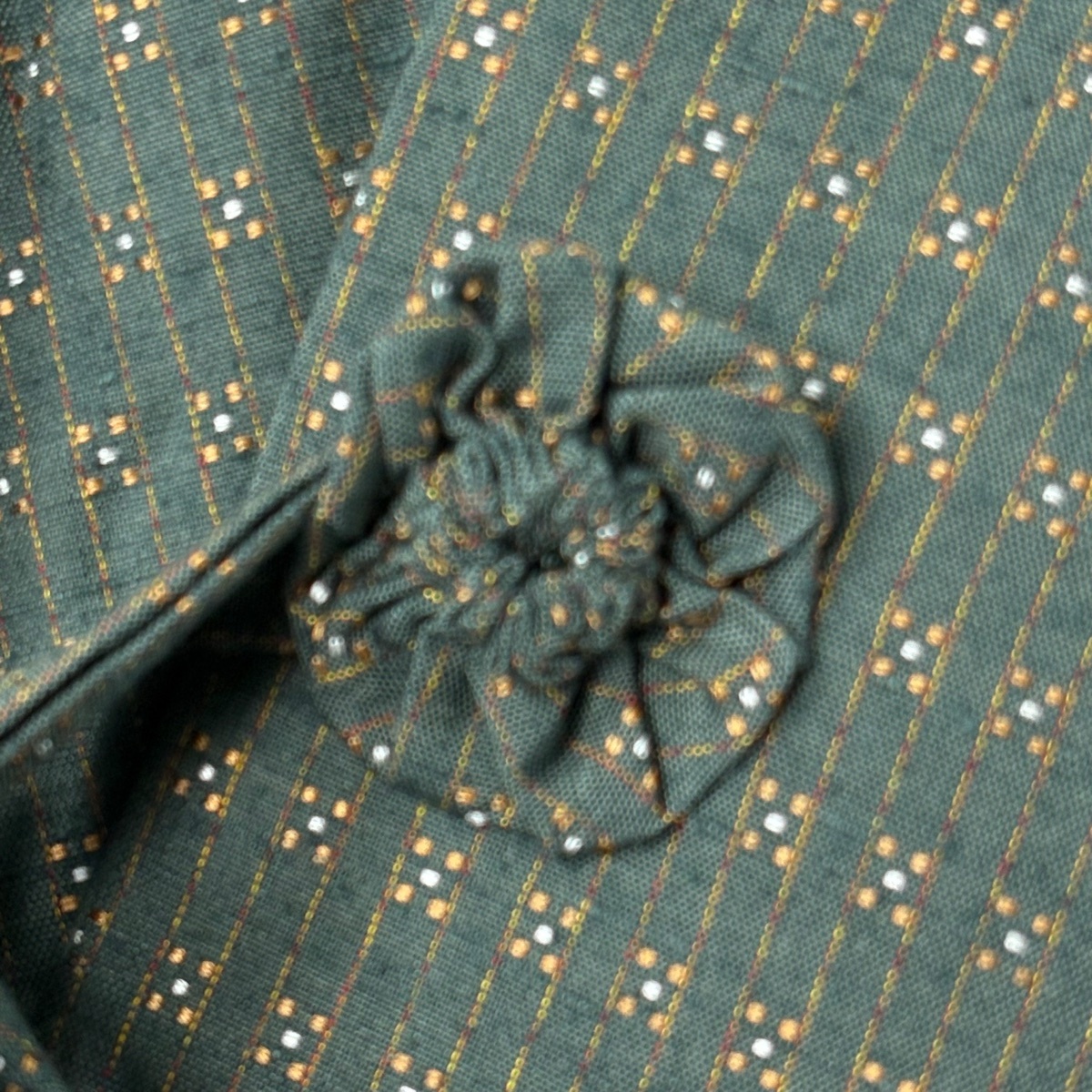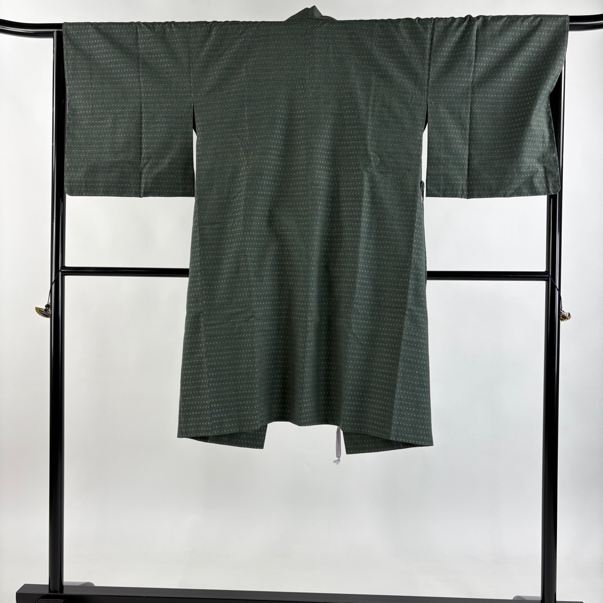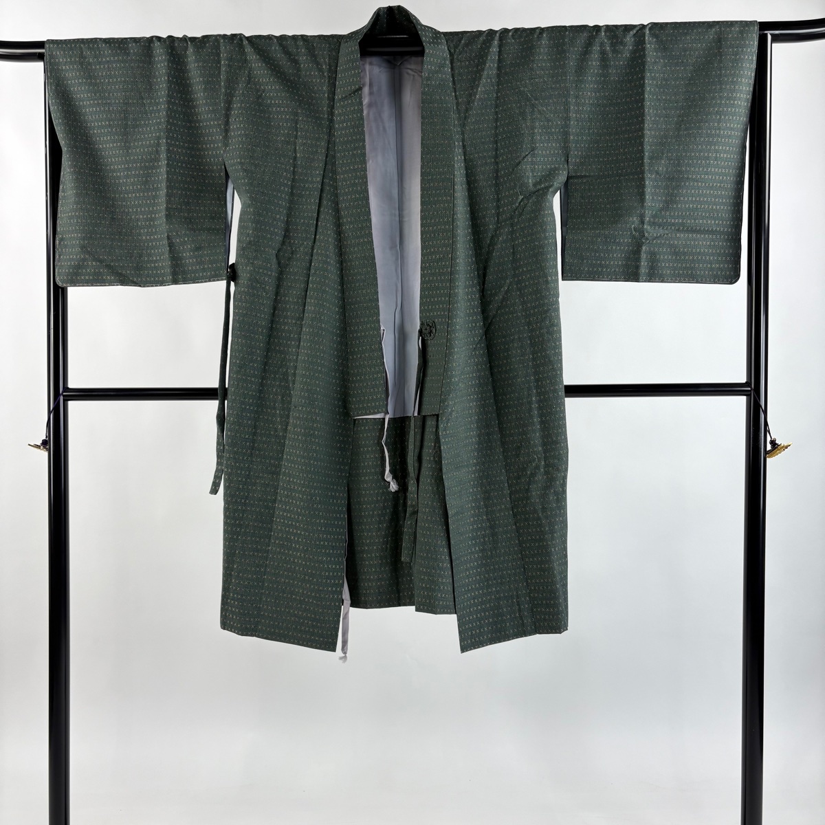 | 道中着 美品 名品 和装コート 着物衿 お召地 幾何学模様 緑 身丈110 裄丈66 M 正絹 【中古】 |