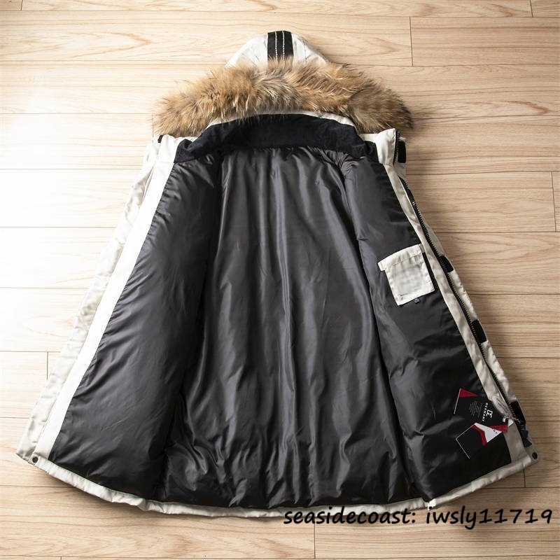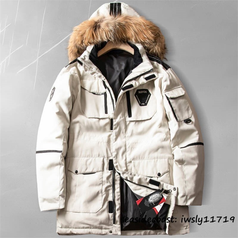 秋冬新品*ダウンジャケット メンズ ダウンコート フード付き 取り外し可 ミドル丈 厚手 防風防寒 暖かい アウター アウトドア ホワイト M