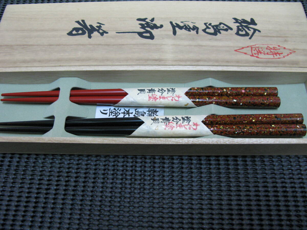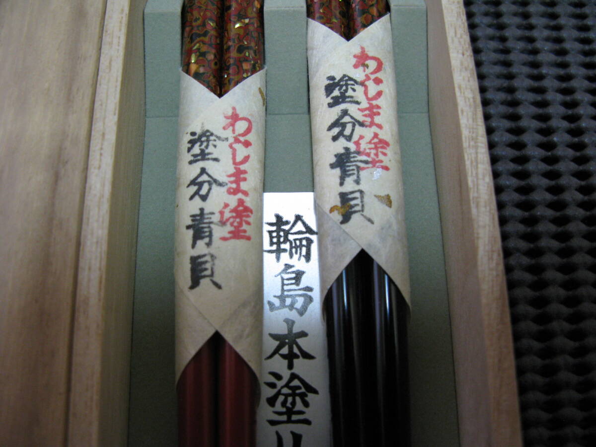 輪島本塗り 塗分青貝 御箸2膳◆◆未使用保管品 漆塗り うるし