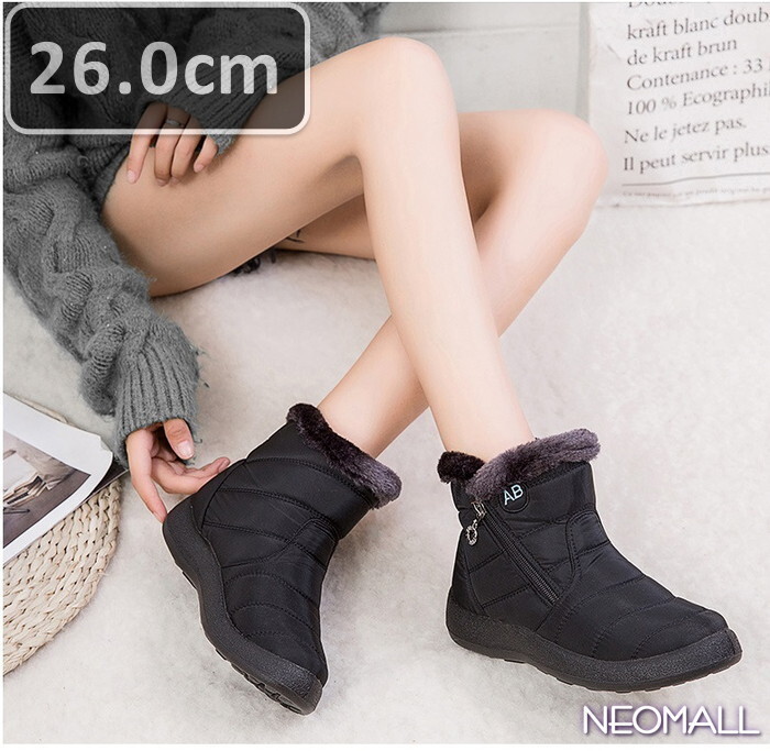 レディース スノーシューズ 【957】 ブラック 26.0cm ムートンブーツ スニーカー ウィンターブーツ 裏起毛 防水 防寒 防滑 冬用靴 綿靴