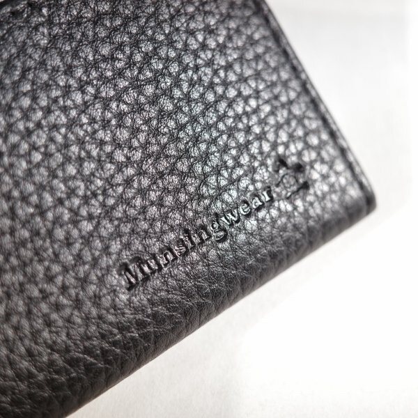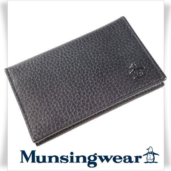 | Munsingwear マンシングウェア メンズ 牛革レザー 本革 二つ折り ロゴ 名刺入れ カードケース 黒 ブラック |