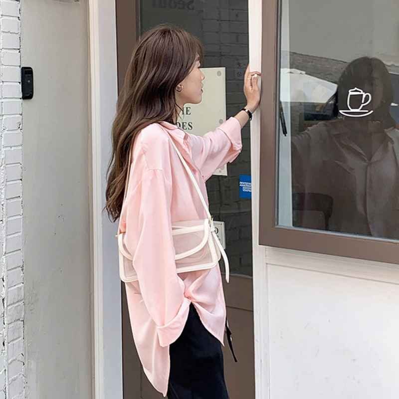 落ち感のあるサラリとした肌触り長袖スキッパーブラウス