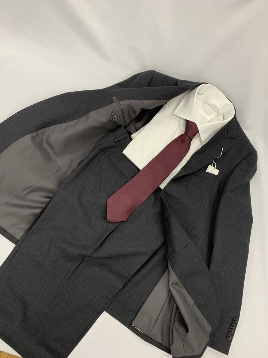 定価7.59万 新品 特価セール SALE 74%OFF ウール 未使用 ダークグレイ A6 ウエスト82cm セール 合物 サイドベンツ 毛100% 春 秋 417-1