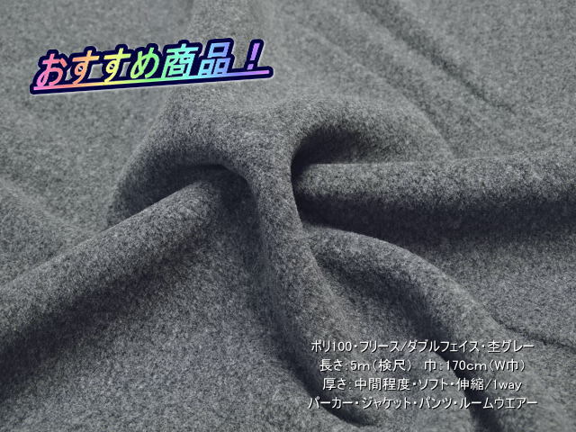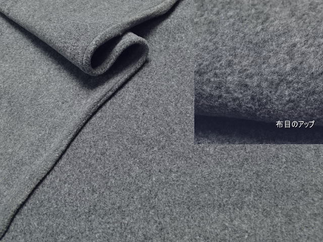 商品は、ポリ100・フリース/ダブルフェイス・杢グレーでございます。