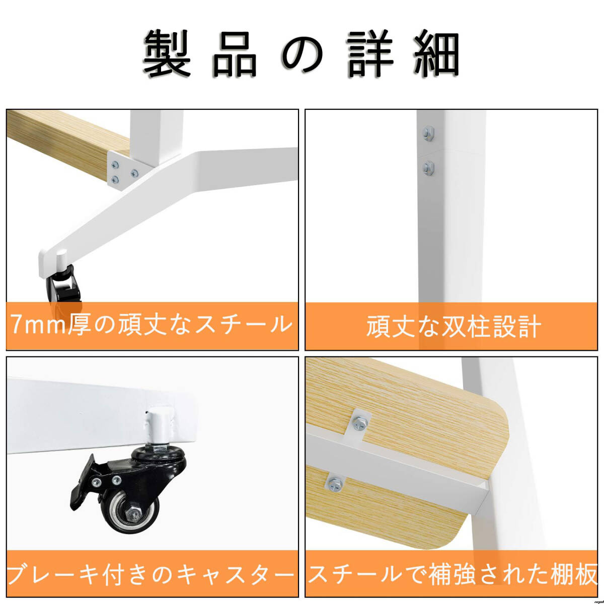 本体構造:双柱設計、厚さ20mm MDF棚板、強化スチール柱