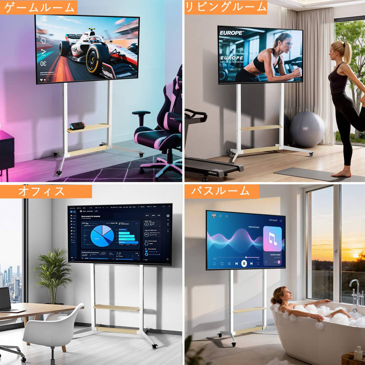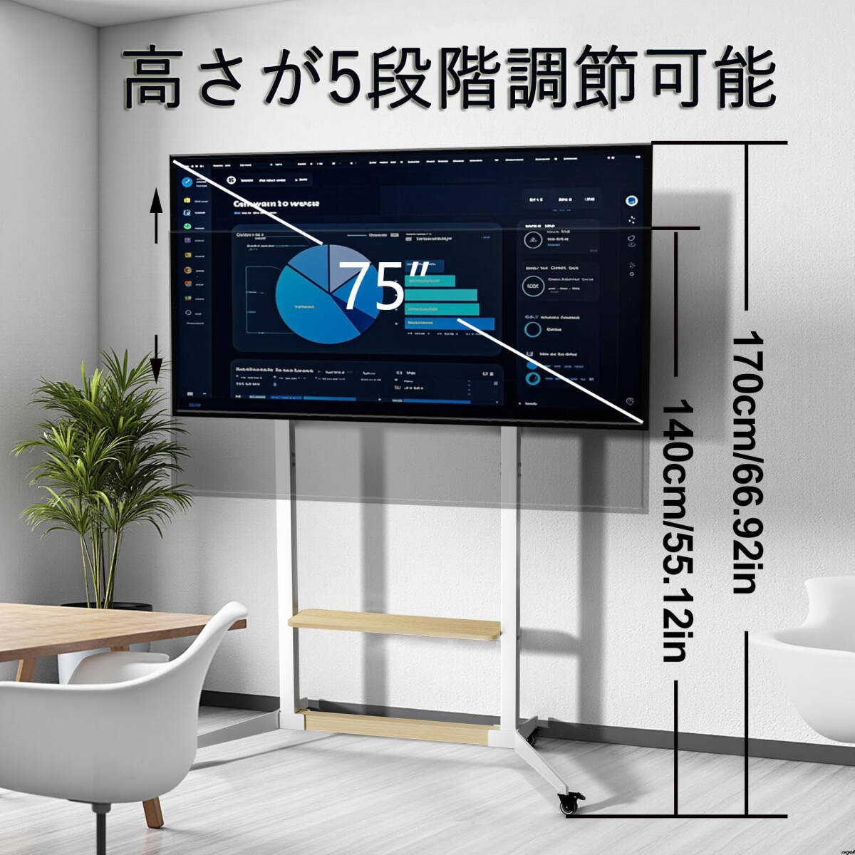 【自立式で壁に依存せず設置可能】 大型テレビスタンド 40~100インチ対応 高さ調整可能 多用途 耐荷重100kg キャスター付き