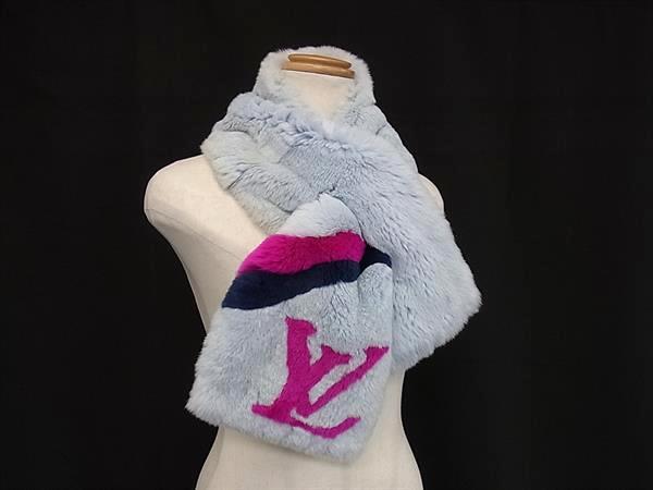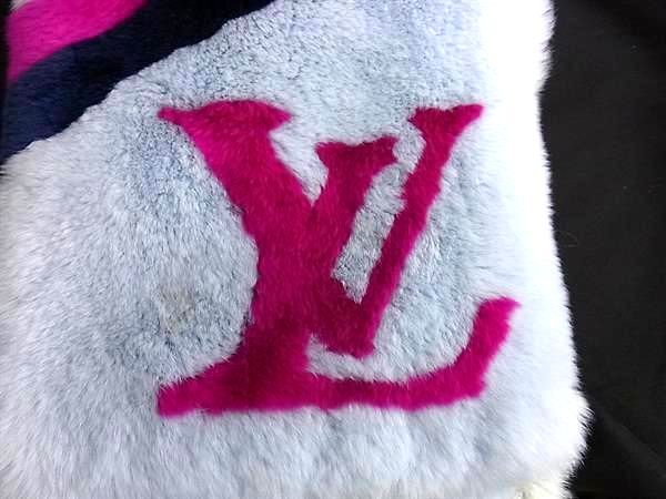 1円 LOUIS VUITTON ヴィトン エシャルプ レインボー ストライプス ファー マフラー 防寒具 ライトブルー系×ピンク系 BN6078