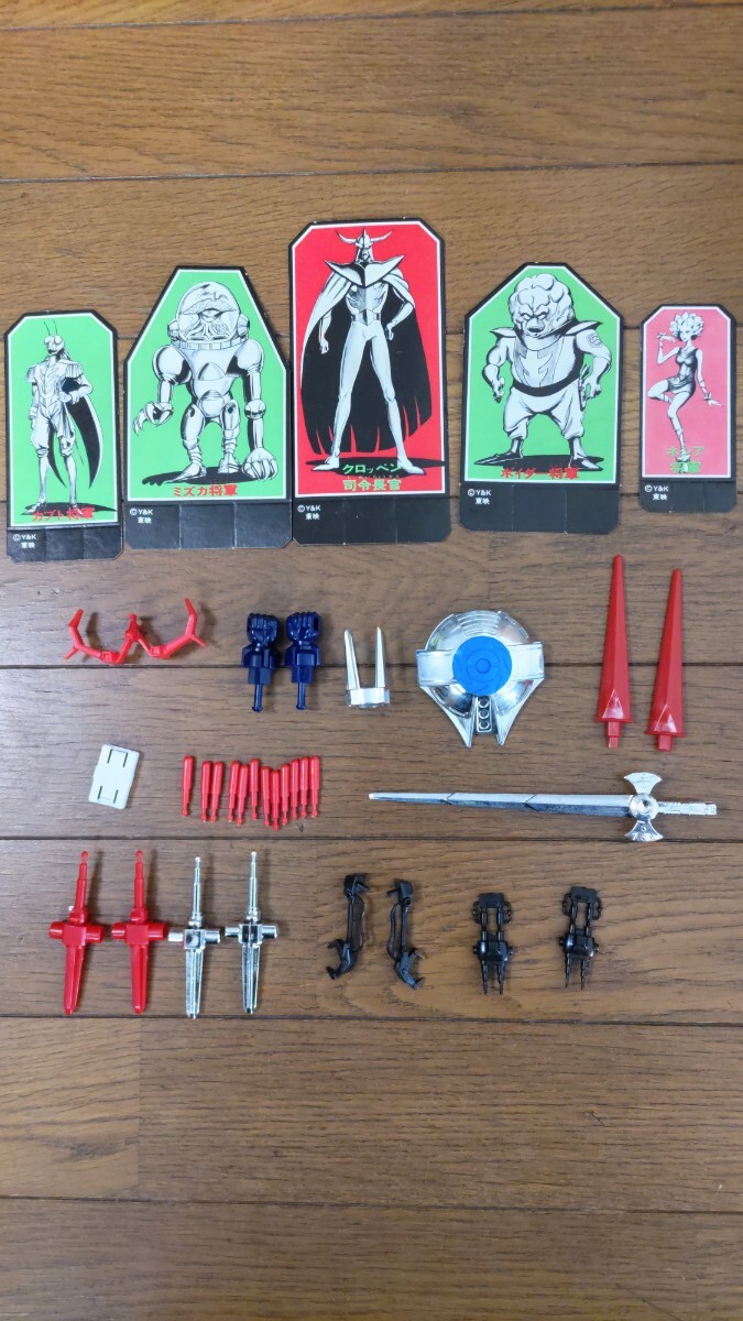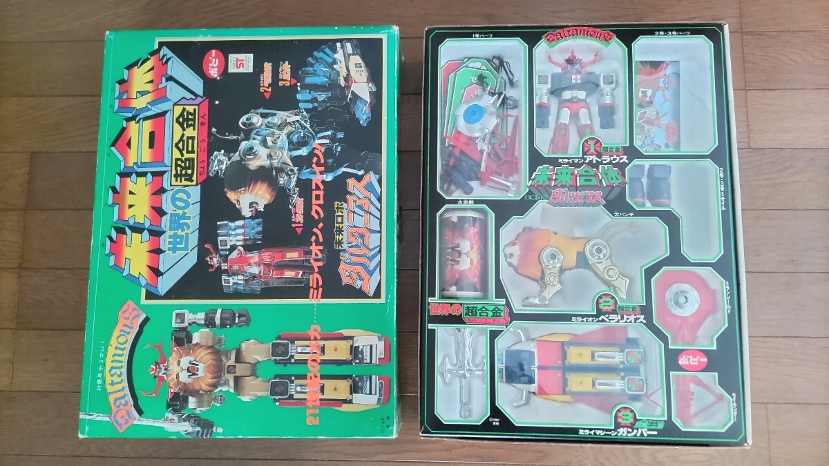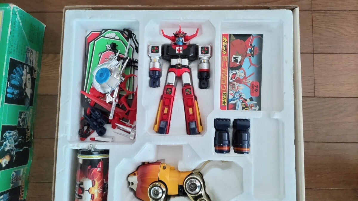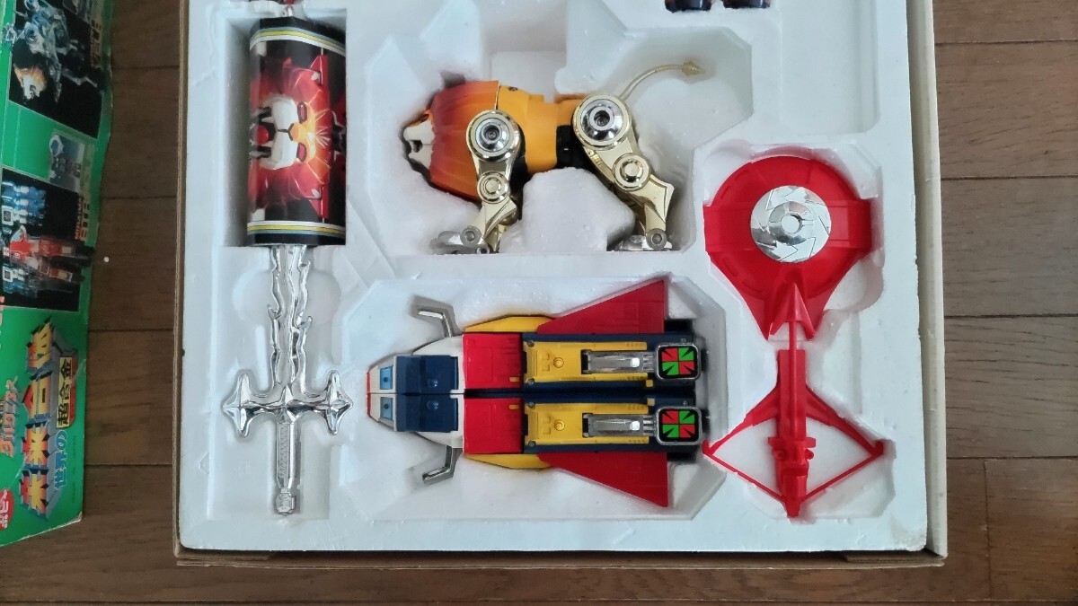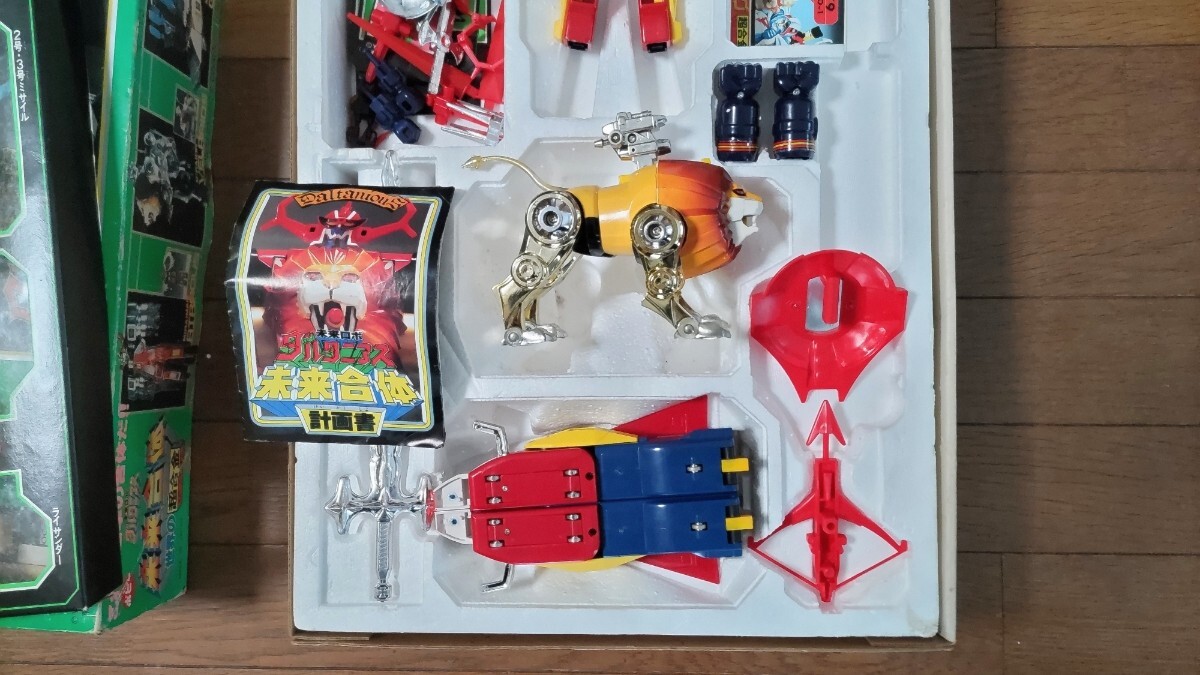 当時購入して数回合体させましたが、そのあとは箱にしまって長期間自宅で保管していました。欠品ないと思いますが、念のため画像でご確認ください。出品に伴い全てのパーツは一度取り出して外観上の破損はないことを確認済です。ただし変形・合体の確認はしていません。