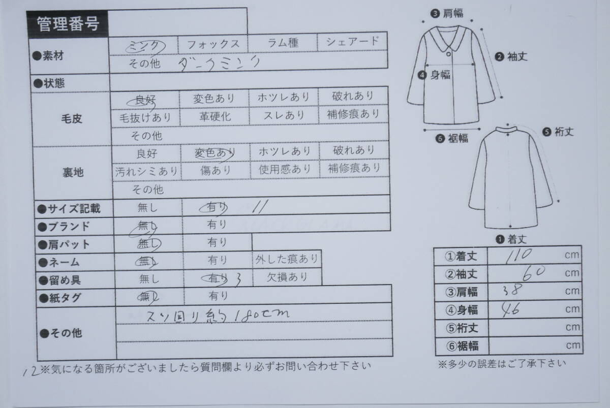☆ダークミンク☆ロングコート☆着丈110cm☆襟BIGサイズ☆裾回り約180cm☆