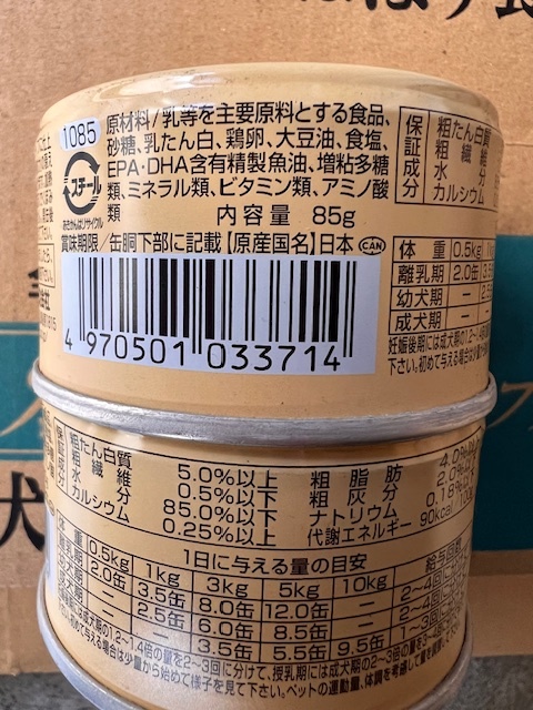 | * 商品説明 * 全年齢、犬用総合栄養食。 消化吸収性が高く、食べやすいムースタイプなのでシニア犬や病中・病後の栄養補給にも。 国産 85g入り×34缶セット 賞味期限2026.10月末×10、2027.06月末×24 ※商品重量約3850g 未使用新品です。 在庫処分品とご理解の上ノークレームノーリターンでお願いします。 | ||||||||