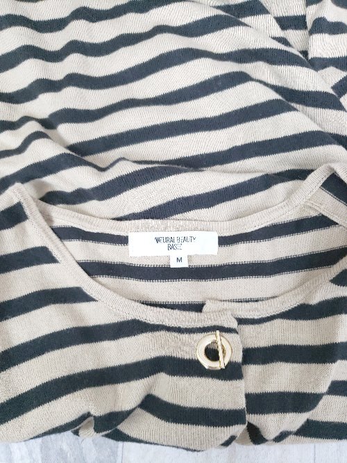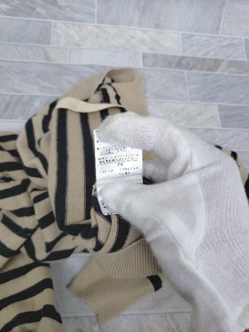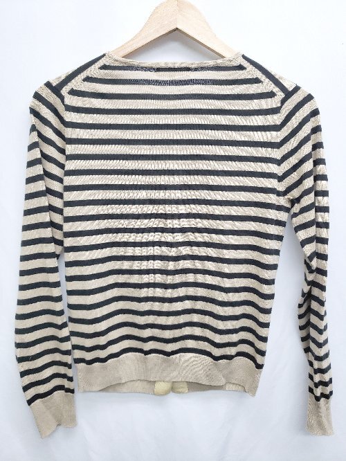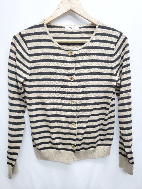 ◇ NATURAL BEAUTY BASIC ナチュラルビューティー ボーダー 長袖 カーディガン サイズM ベージュ ブラック レディース P