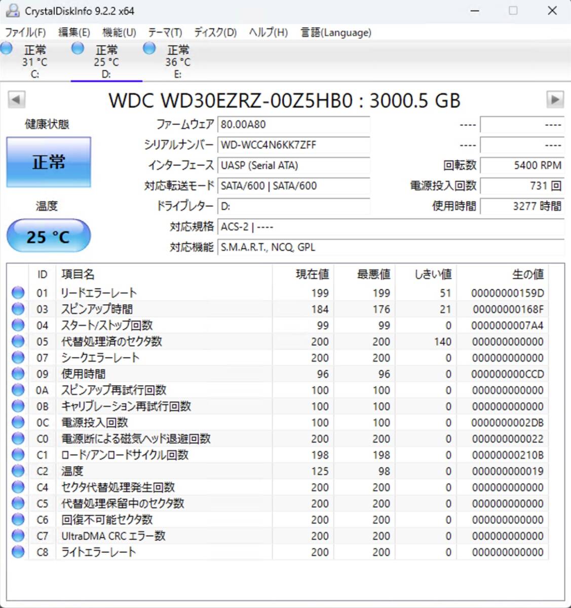 【正常】WD HDD 3TB×2台 計6TB WD30EZRZ Western Digital SATA 3.5インチ②