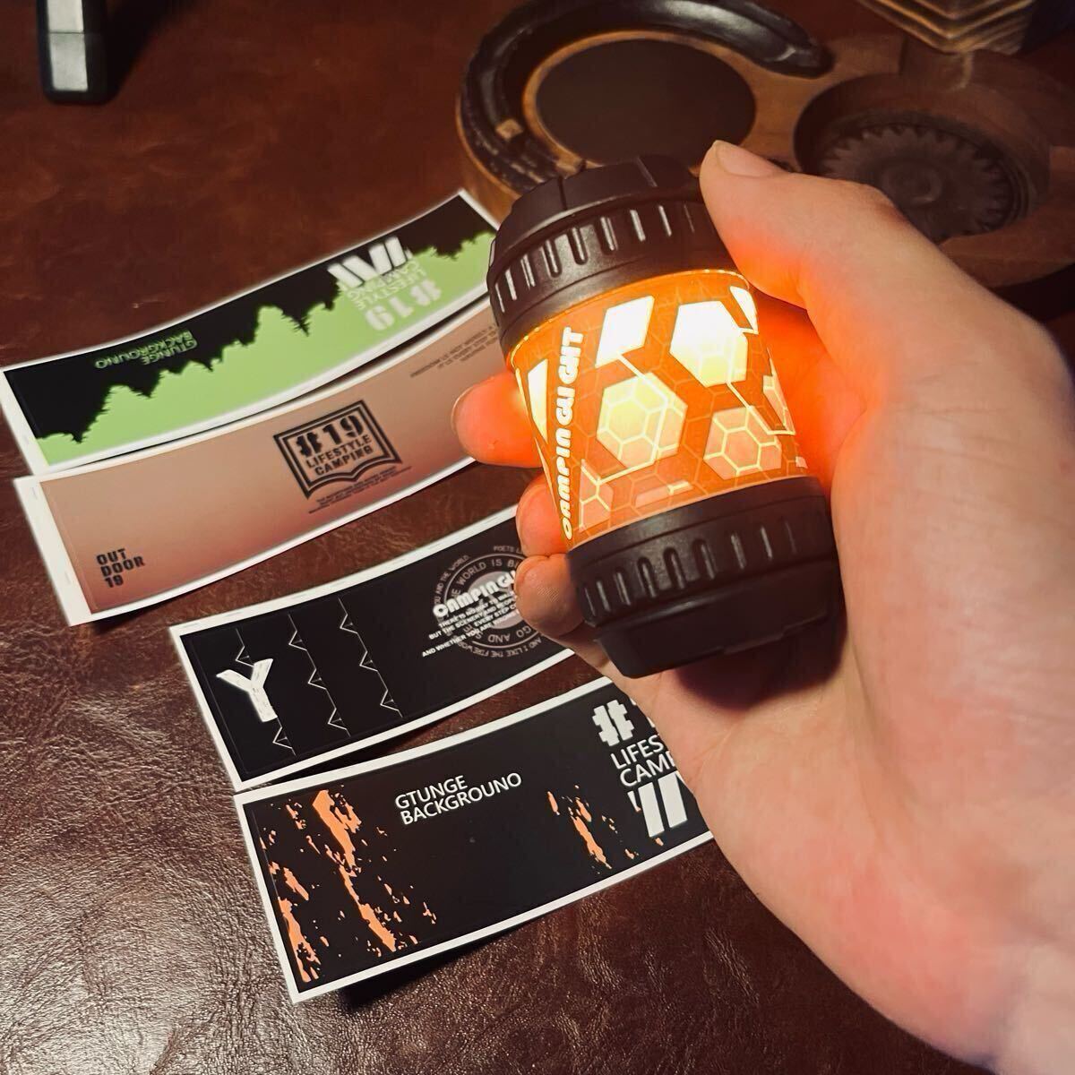 超激レア こまを回す LEDランタン ステッカー5枚 吊り下げ ライトランプ IPX6防水 充電式 1000mAh 三脚利用可能 アウトドア 登山 80×44mm