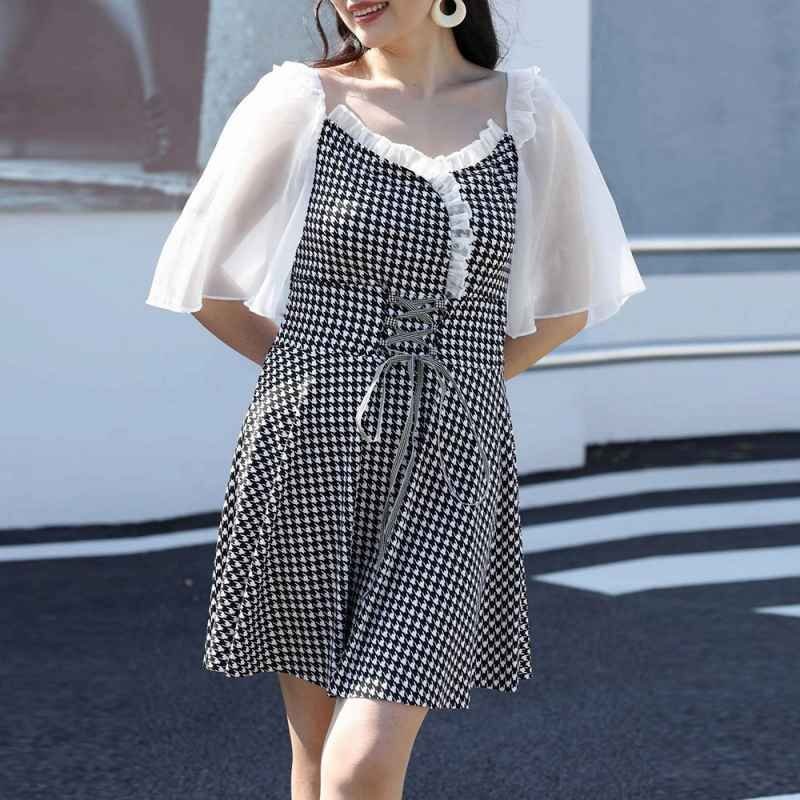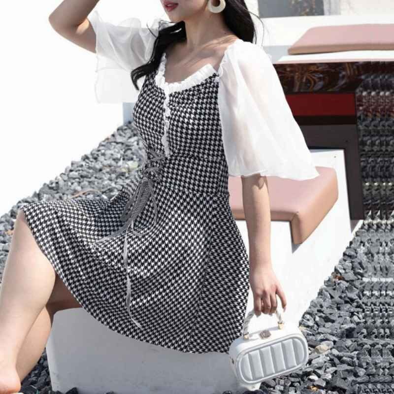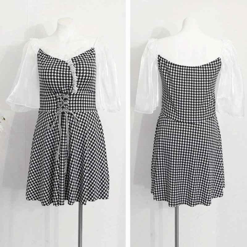 お洒落に体型カバーできる千鳥柄デザインのワンピース水着です。