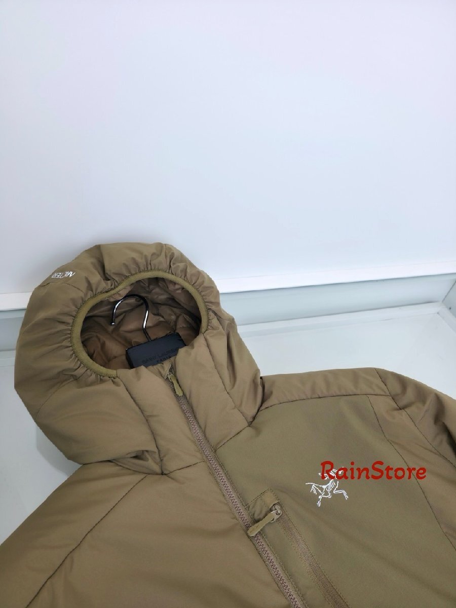 ARC'TERYX メンズ中綿ジャケット マウンテンパーカー カーキ XLサイズ ブルゾン ジャケット 吸湿性 防風防水 フード付 アウトー 冬物
