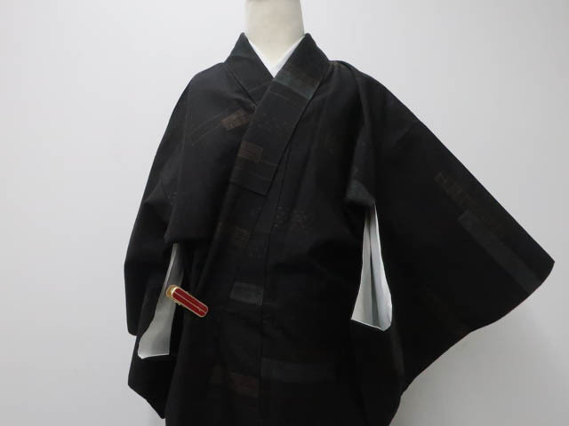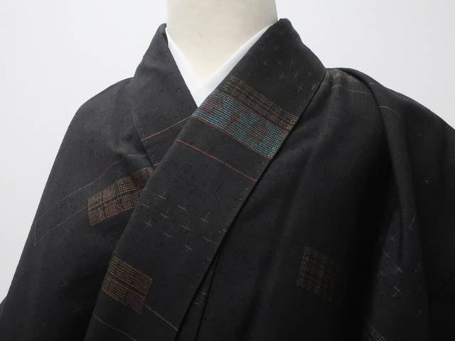 地色は墨です。 1枚目の画像が近いお色かと思われます。 素材は正絹です。 |