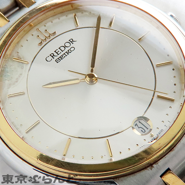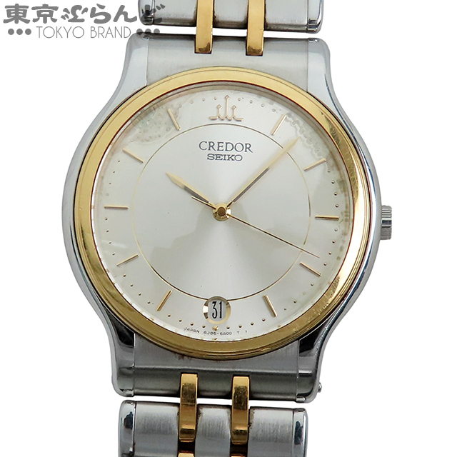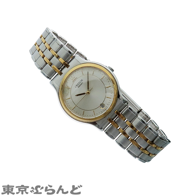 101835688 1円 セイコー クレドール GCAZ004 8J86-6A00 シルバー K18YG コンビ ラウンド デイト 腕時計 メンズ クォーツ 電池式 電池交換済