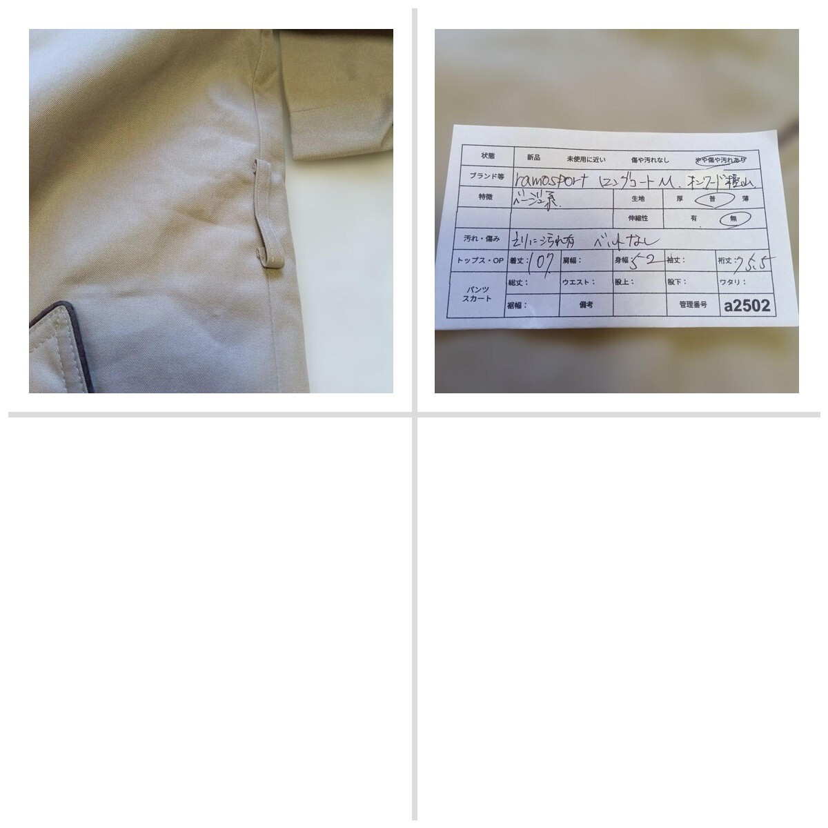 オンワード樫山 ramosport ロングコートM ベージュ系 E2433A
