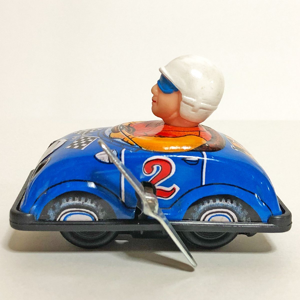 この東京 葛飾三幸製作所製の"Wind-Up Comic Turn Racing Car No.2 BLU ゼンマイターン コミックレーシングカー ブルー号"