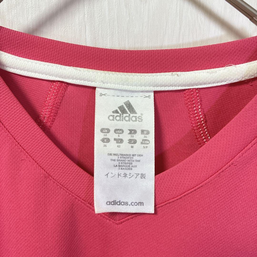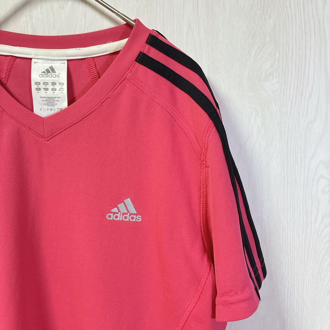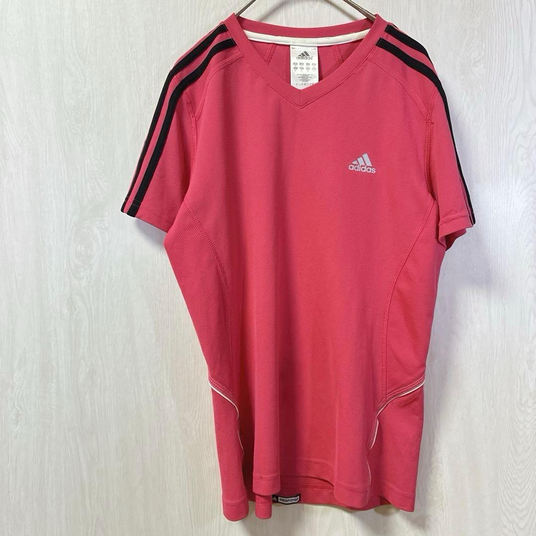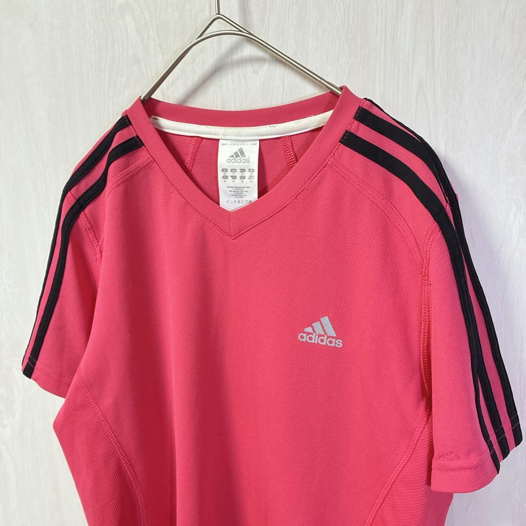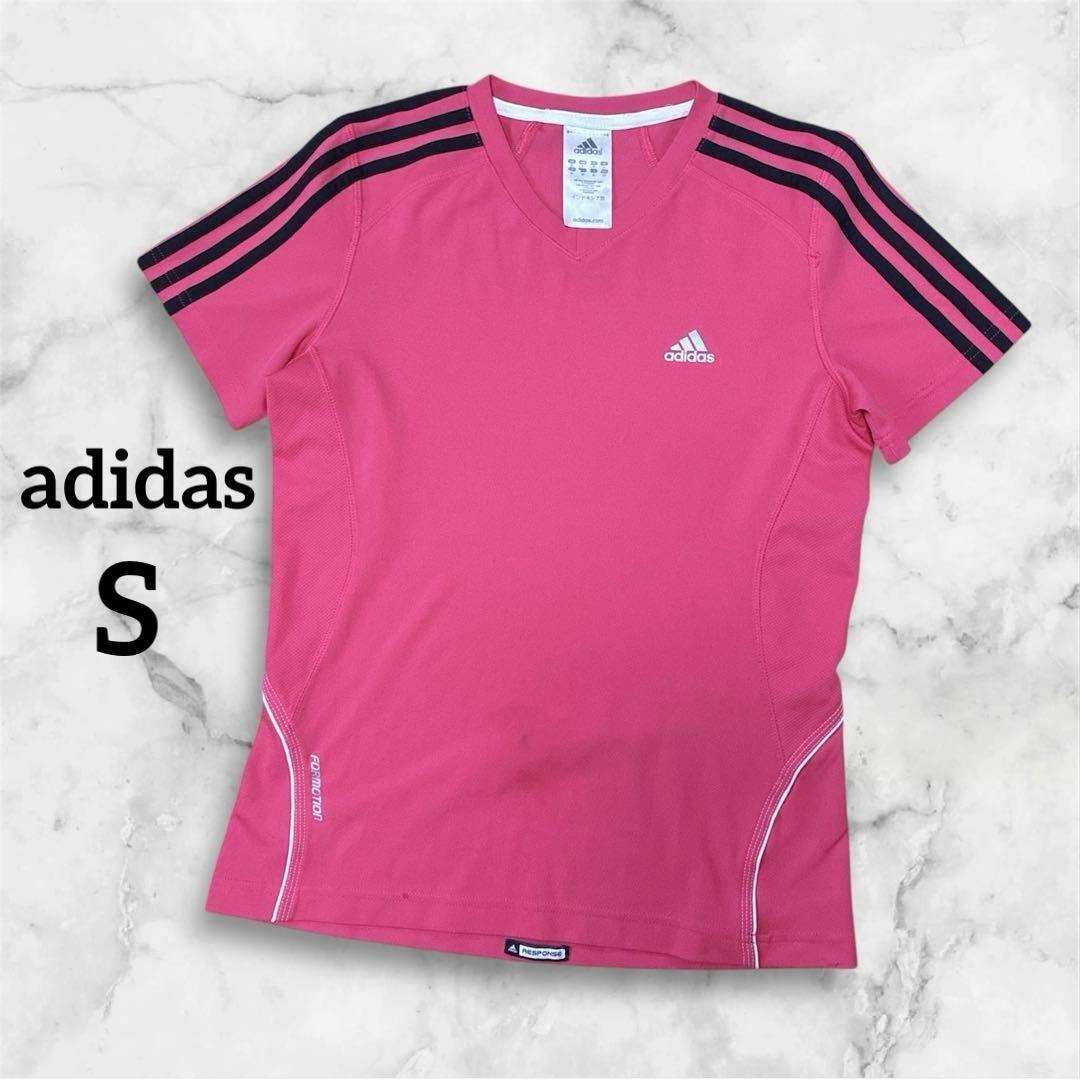 adidas 半袖 スポーツ Tシャツ ピンク S 吸汗速乾 ライン ショート 55769B