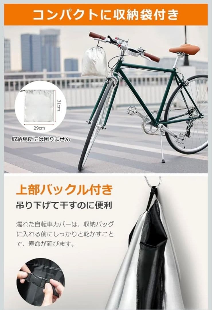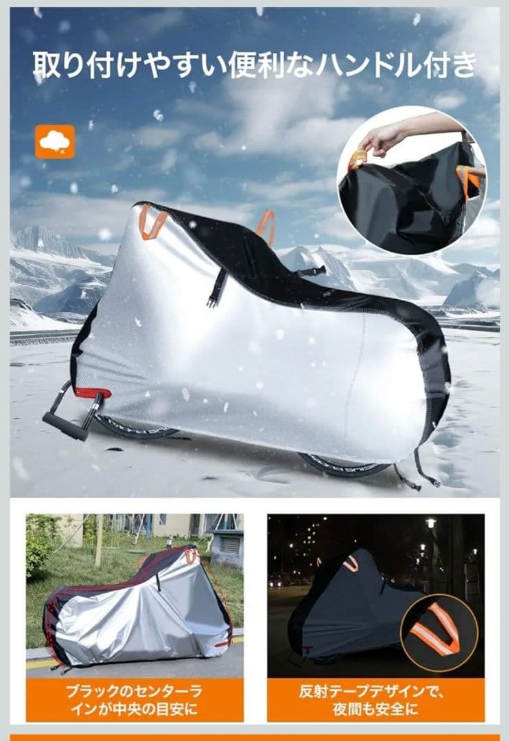 【300Dの厚手生地で作られた自転車カバー】高品質の300Dオックスフォード防裂・耐退色生地を採用し、防水性と耐久性に優れ、持ち運びも軽量で簡単です。PUコーティング加工による高い撥水効果と二重縫製加工で、雨、雪、氷、風、ほこり、直射日光などあらゆる悪天候から自転車を保護します。 【取り扱いやすいハンドルと反射テープの一体型デザイン】カバーの両サイドには取り外しやすいハンドルが装備され、夜間の安全を考慮した反射テープでデザインされています。カバーの上部にはバックルがあり、濡れたカバーを吊り下げて干すのに便利です。完全に乾かしてから収納バッグにしまうことで、カバーの寿命を伸ばすことができます。 【風飛び防止のサイクルカバー】前後の底部には伸縮性のゴムがついており、着脱が容易です。さらに、風によるズレを防ぐための調整可能な防風バックルも前面に装備されています。台風が来ても安心してご使用いただけます。 【盗難防止&収納バッグ付き】前面の布製ロック穴で、盗難の心配なく自転車を安全に保つことができます。収納バッグも付属しており、収納や持ち運びが簡単です。さらに軽量なので、気軽に持ち出せます。 実物の写真は8枚目以降になります。説明と異なる場合がありますので、必ず写真をご確認ください。不明点はコメントくださいませ。 訳あり品のため、箱潰れ・ビニール破れ・開封痕・指紋などがある場合がございます。簡易検品のため、使用感や部品不足を見落としている可能性もあります。 完品をお求めの方はご希望に添えない場合がございます。 Amazon参考価格:2779円 即日発送(最安発送方法に変更あり) フォロー+購入希望コメントで100円お値引き ご購入前にプロフィールをご確認ください。 管理番号15 |