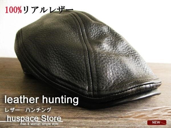 大きいサイズ BIG 本革 ハンチング メンズ 帽子 本革素材感最高人気商品 レザーハンチング 黒 P297-B1 新品 メンズ Lサイズ 約62cm