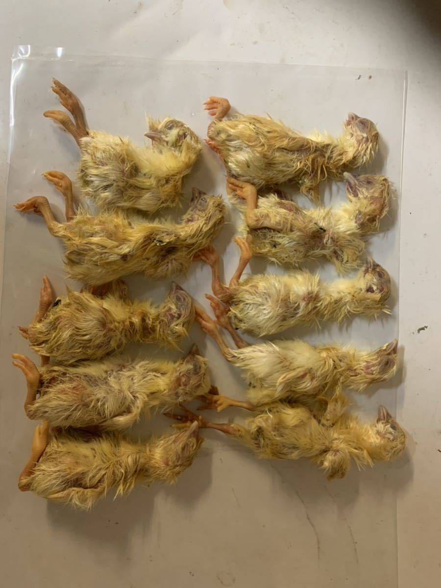 冷凍ヒヨコ 1羽28円 猛禽類・爬虫類の餌用 ! 10羽単位で10羽からご注文をお受け致します。発送は佐川急便の(発払い)クール便での発送を予定しておりますし、(沖縄や離島にはゆうパックの(発払い)クール便を対応させて頂きます。) 生で入荷したヒヨコを当方でパックして冷凍を致しました。個包装では無いのですがちゃんと1羽づつでお使い頂けますので小型の猛禽類や換羽期の食欲が減る時期にも安心です。 我が家のアビシニアン・アフワシ・オオフクロウ達も大好きで毎日2羽以上食べてくれていますよ♪♪ 写真は生で入荷の状態と冷凍をした状態の2種類を載せていますが!オークションでは10羽の金額ですのでお間違い無いようにお願い致します。