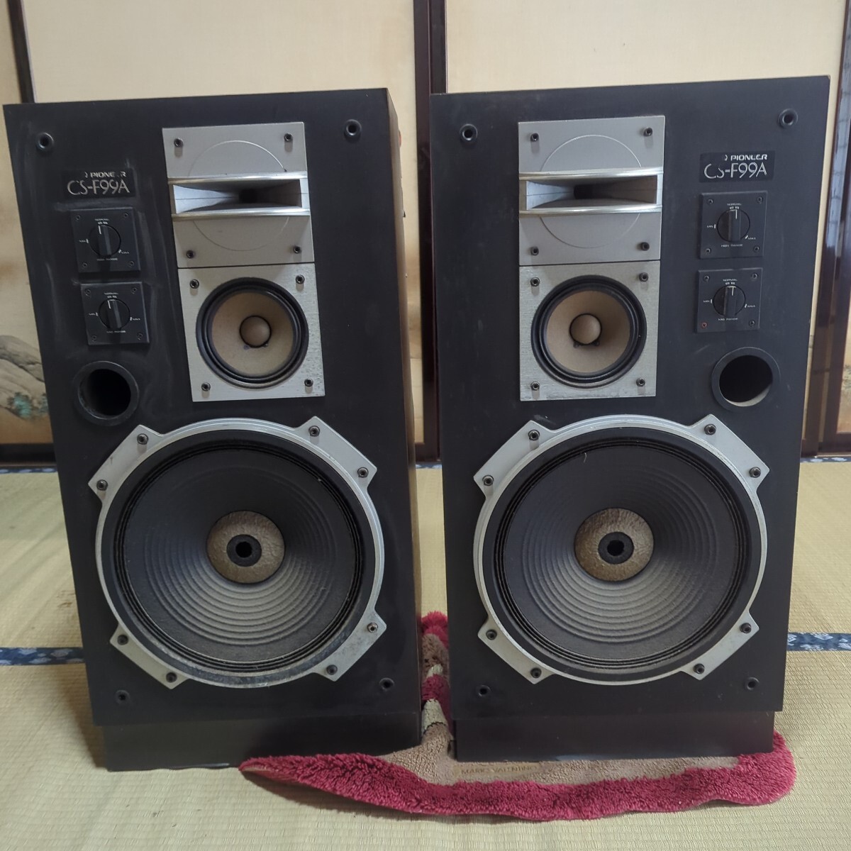 昔むかし 若かりし頃新品で購入 居間に鎮座してました オ−ディオ AVスピーカ―として使用してました 断捨離の為出品します ここ2〜3年は使用していませんでしたが たぶん使えると思います ガリ音はします 天面の汚れはキズでは無く汚れだと思います爪で擦ると取れました 素人が拭くと痛むと思いまして止めました 気づかない汚れ痛みが有るかも知れません