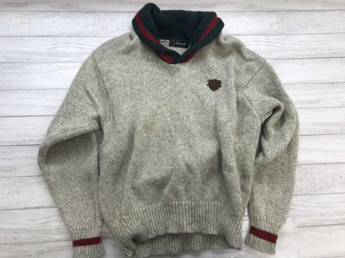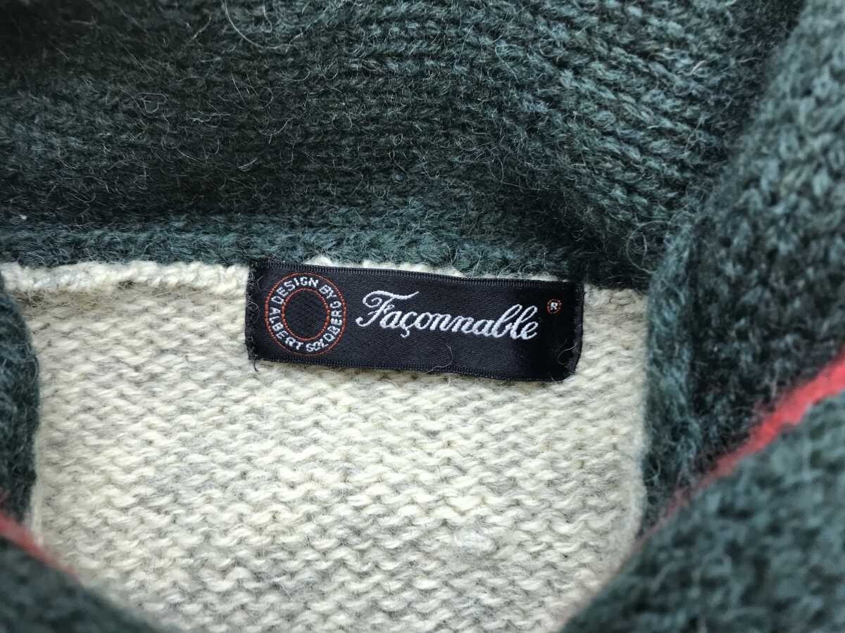 ファッソナブル Faconnable レトロ プレッピー トラッド ショールカラー エンブレム刺繍 ニット セーター メンズ ウール100% L ベージュです。