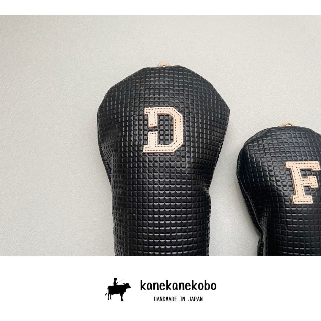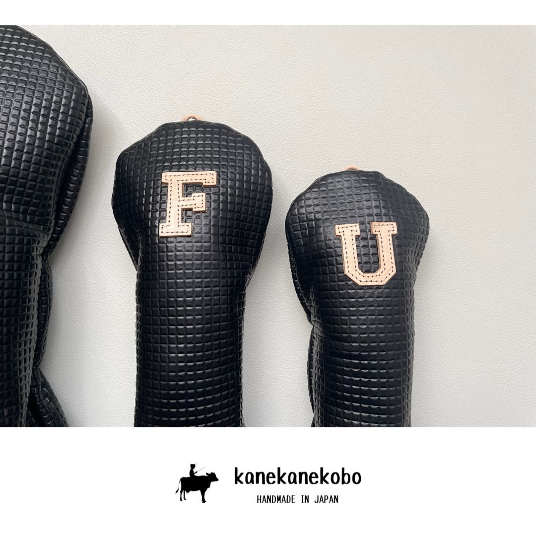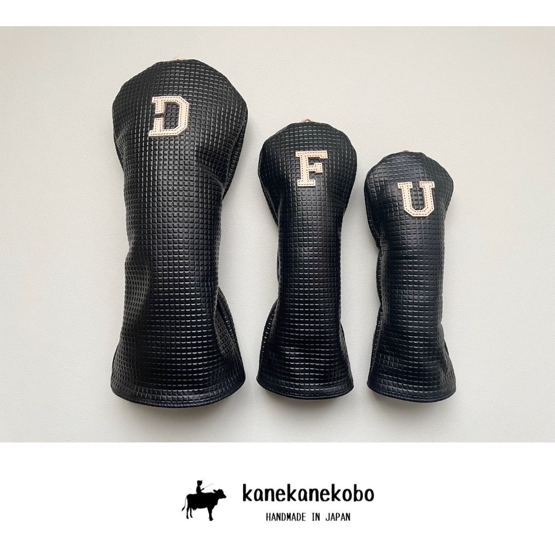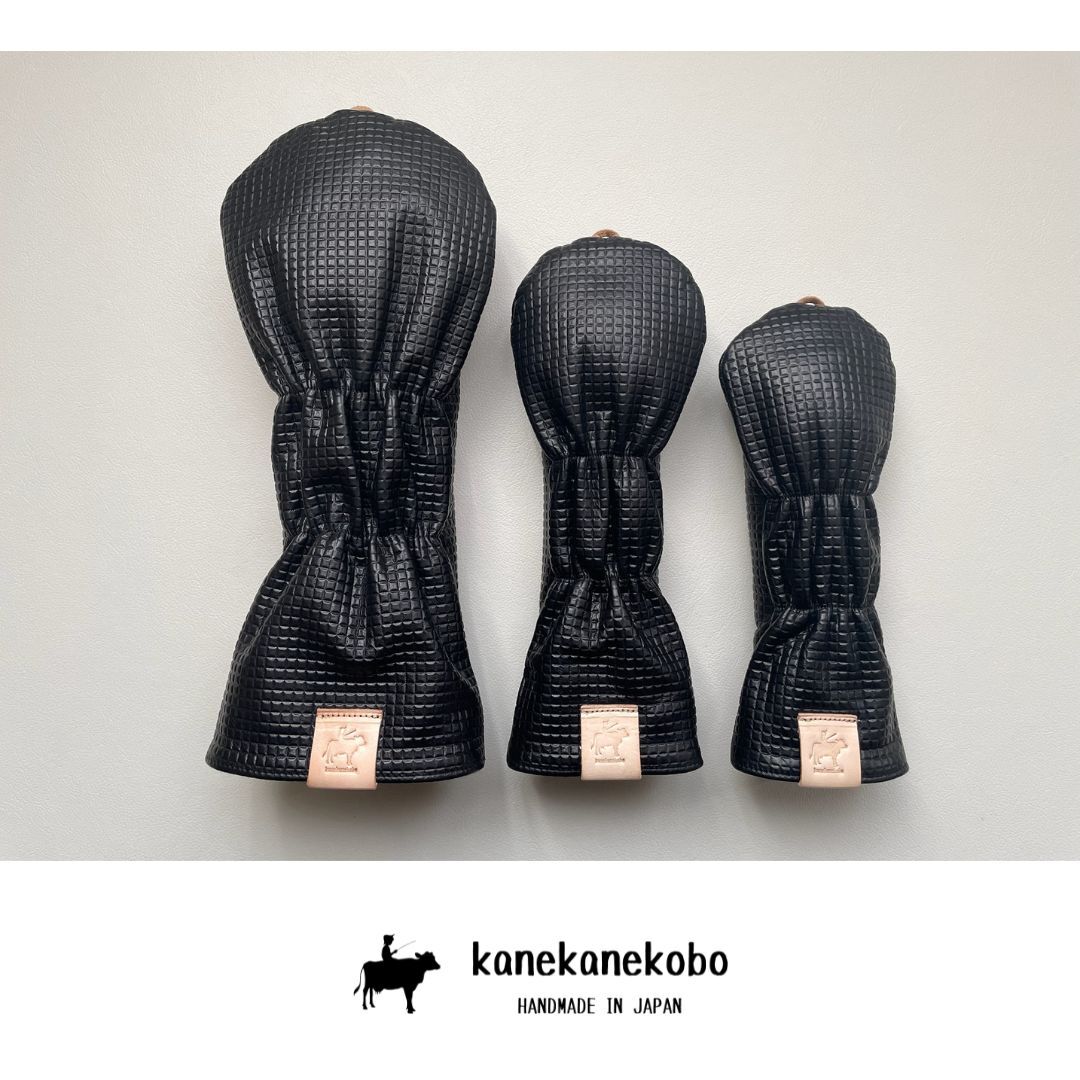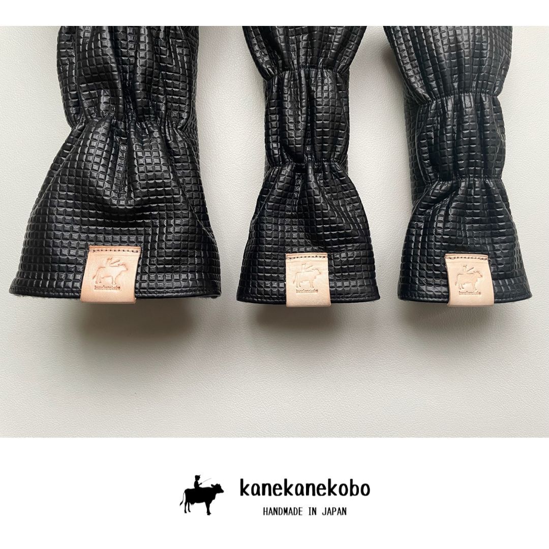 在庫処分 本革ヘッドカバー3本セット 型押しブラック牛革 国産ヌメ革使用 kanekanekobo