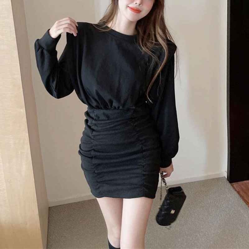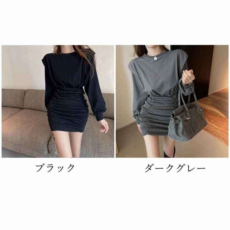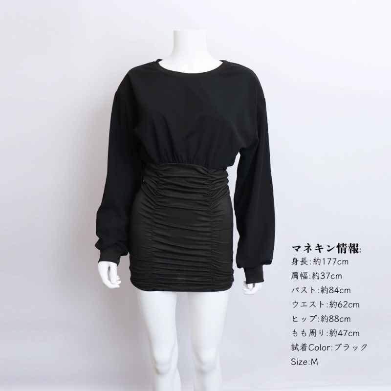 一見シンプルでありながら、ウエストのシルエットや、シャーリング仕様など細部に拘ったミニワンピース