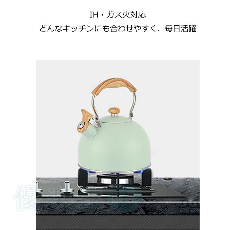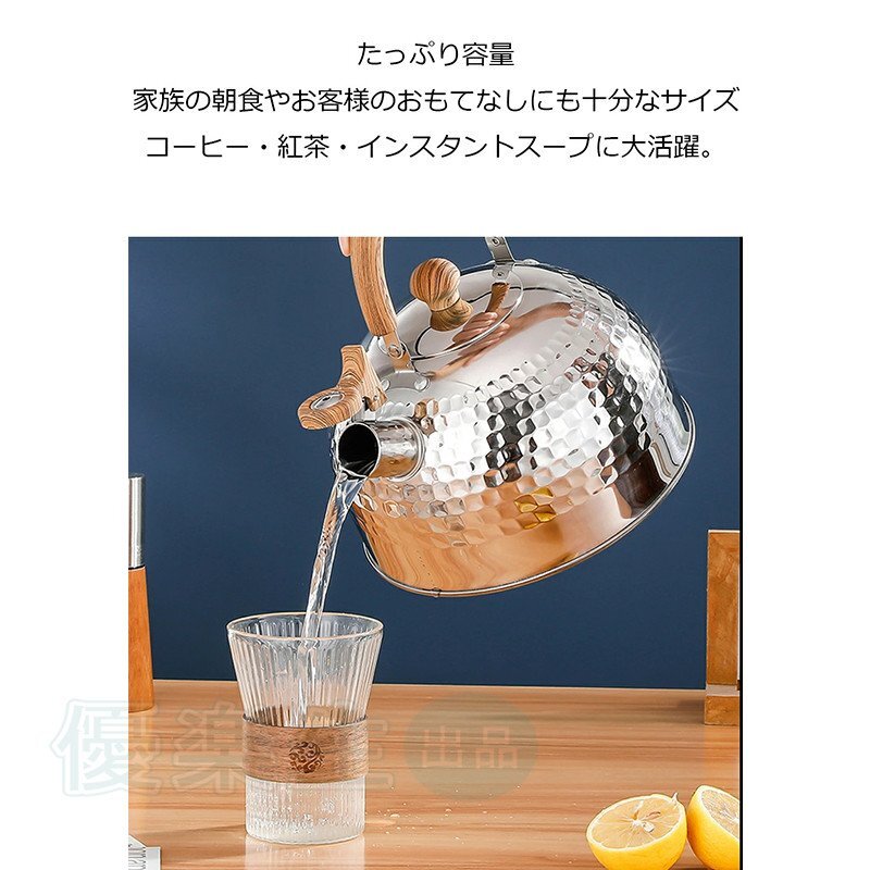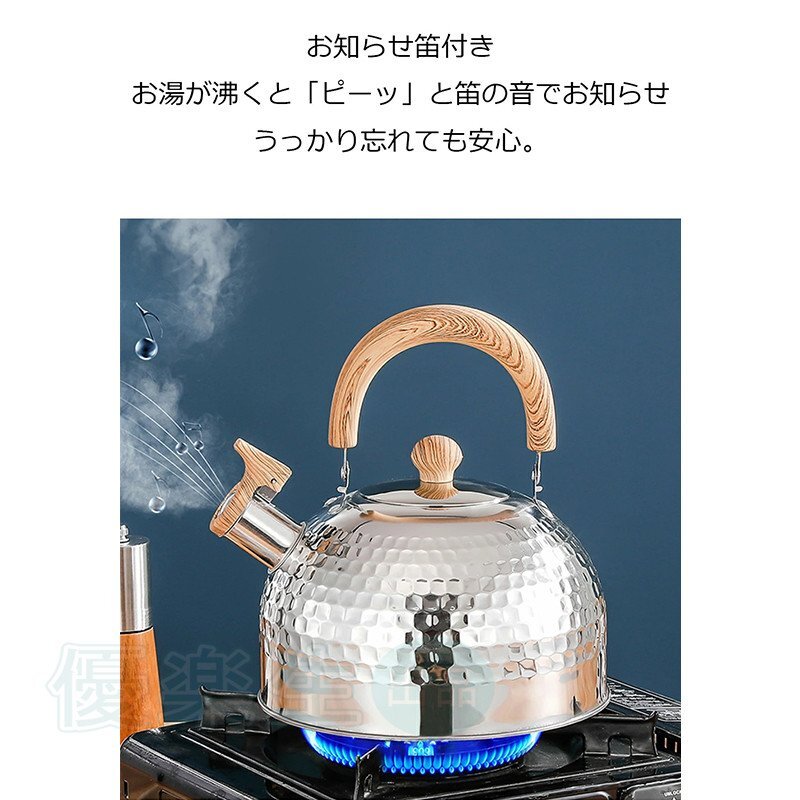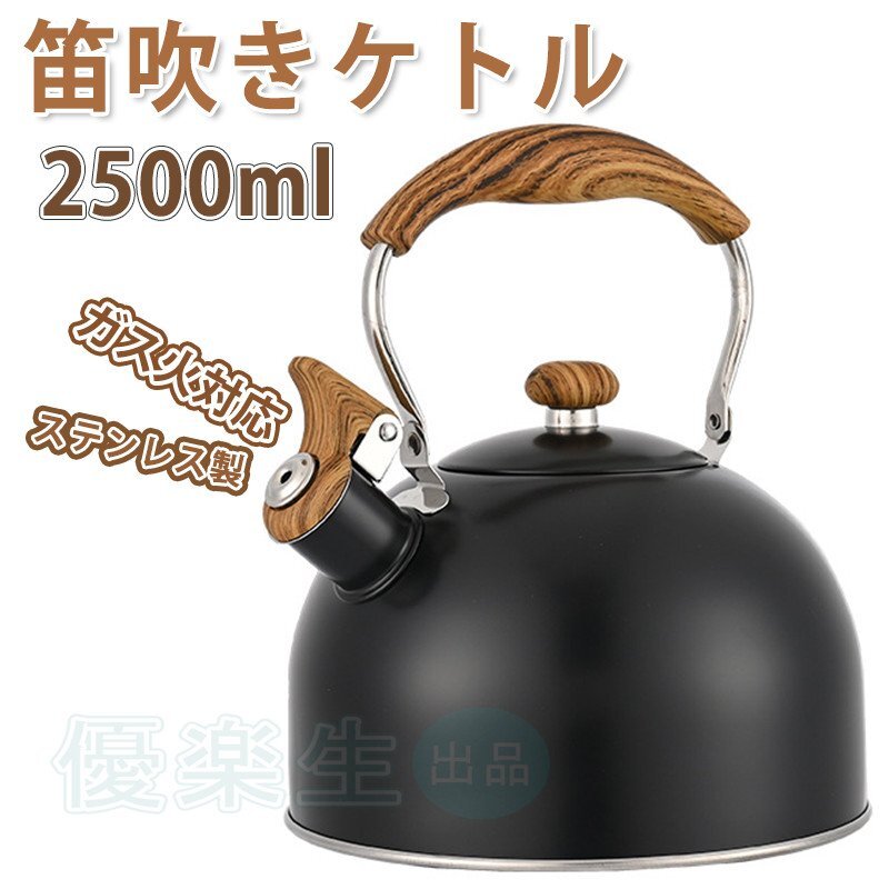 ケトル やかん ステンレス製 笛吹きケトル 2.5L 大容量 広口タイプ IH対応 ガス火対応 直火OK 断熱ハンドル おしゃれデザイン キッチン用品 調理器具