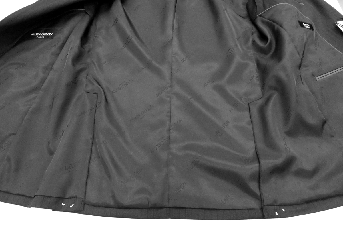 ある意味僕は もっと幸福な人間になっていたかもしれない” 1957年に映画界にデビューして以来、今日までフランス映画に君臨してきた名優アランドロンが監修した高級スーツ。 特色 ・全体にややゆとりのある着心地の良いスーツです。 ・総裏仕立て・本台場・汗止め ・ブランドロゴ入り高級裏地使用。 ・高級品の証AMFステッチ ・SUPER100 細番手高級素材使用 サイズ:三元表示 AB5【胸囲96-ウエスト86-身長170】 上着ベンツ:サイドベンツ 上着胴裏:総裏仕様 袖釦:4個 色:チャコールグレー 柄:10MMのストライプ 表素材:毛99/ポリエステル1 裏素材:キュプラー50/ポリエステル50 (ブランドロゴ入り) 原産国:中国製 詳細な寸法 AB5(胸囲96-ウエスト86-身長170) 上着部分:胸囲115cm/胴廻り101cm/上着丈74cm-肩幅48.3cm-袖丈58.5cm スラックス部分:ウエスト86cm-股上26cm-渡り幅34.5-膝幅24.8cm-裾幅22.7cm | ||||