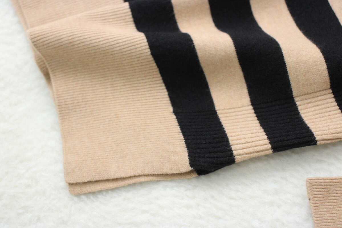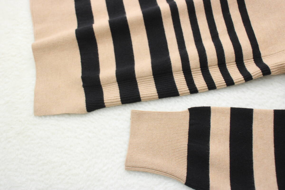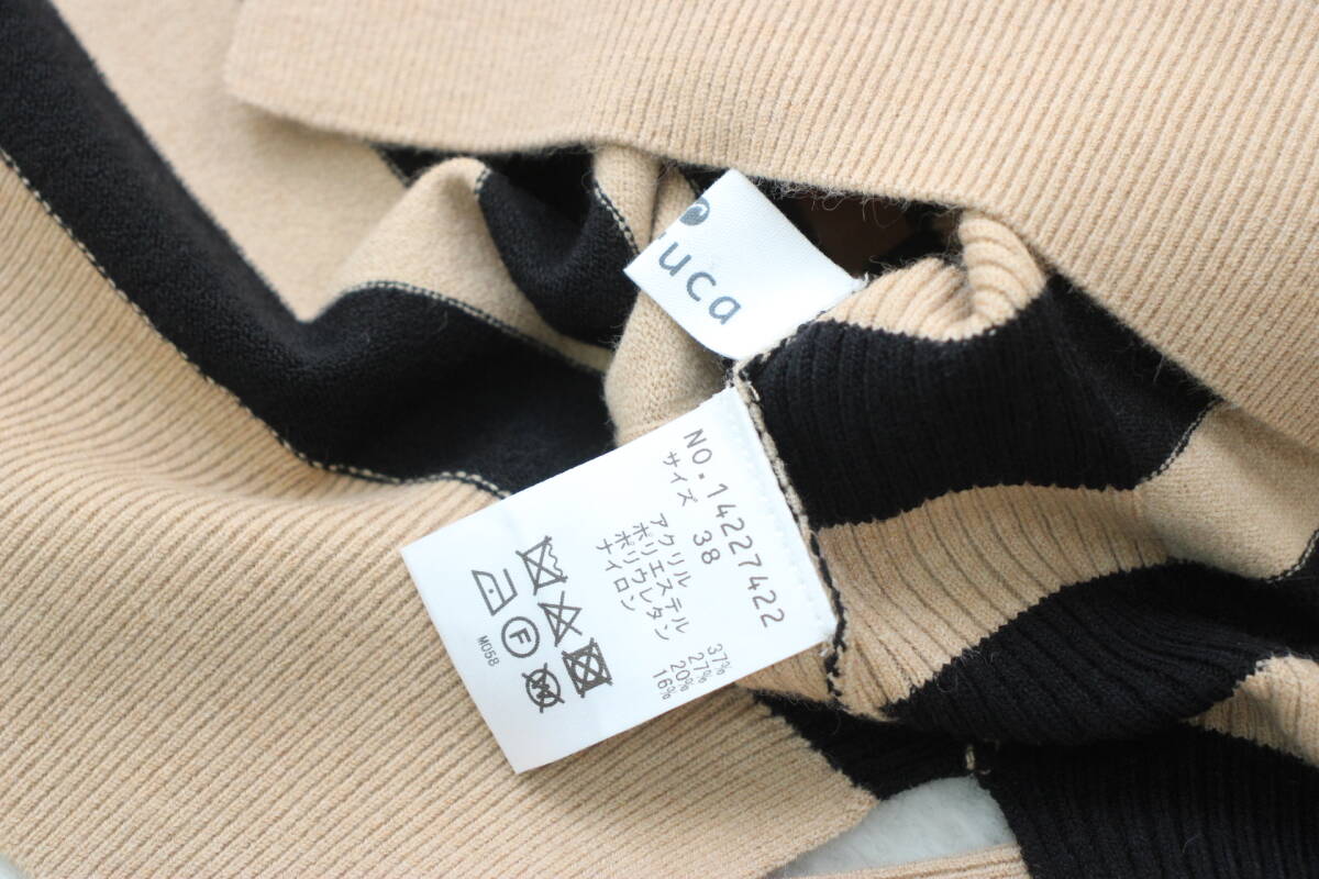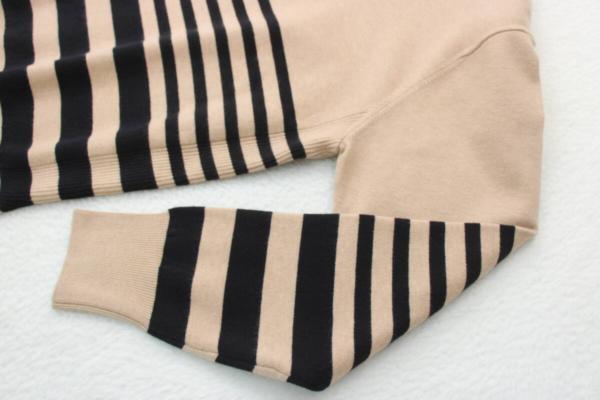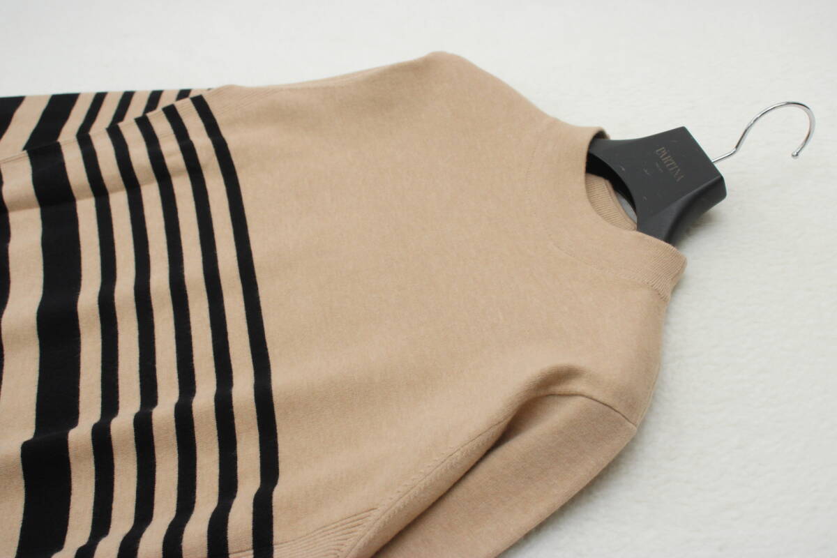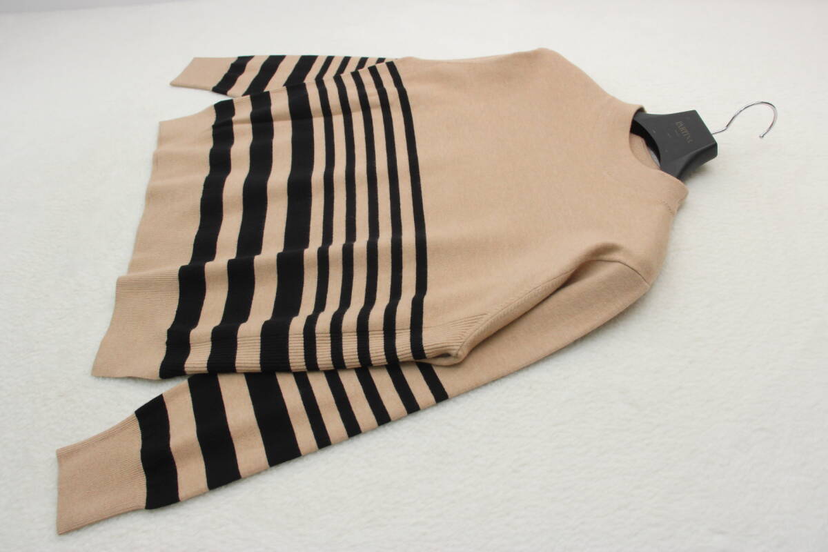 7016 新品タグ付き スーパーストレッチヤーンボーダーニットプルオーバー ブラウンM 定価¥16,500税込み