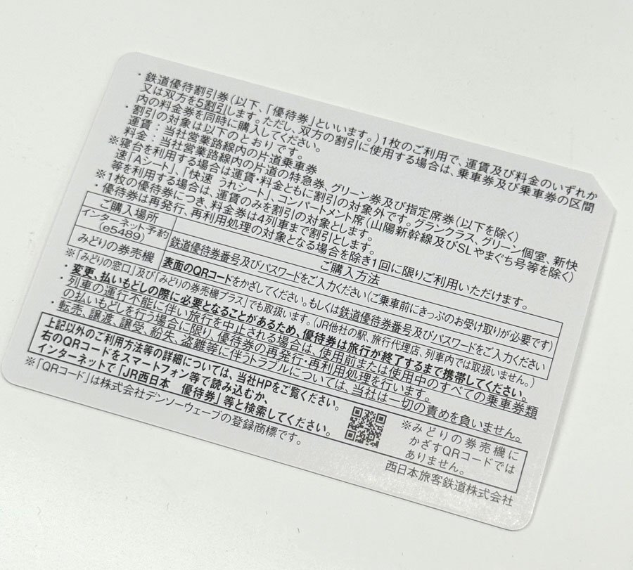 ●パケ便/送料無料● JR西日本 株主優待鉄道割引券X2枚 (有効期限:2026年6月30日迄)(管理番号No-237)