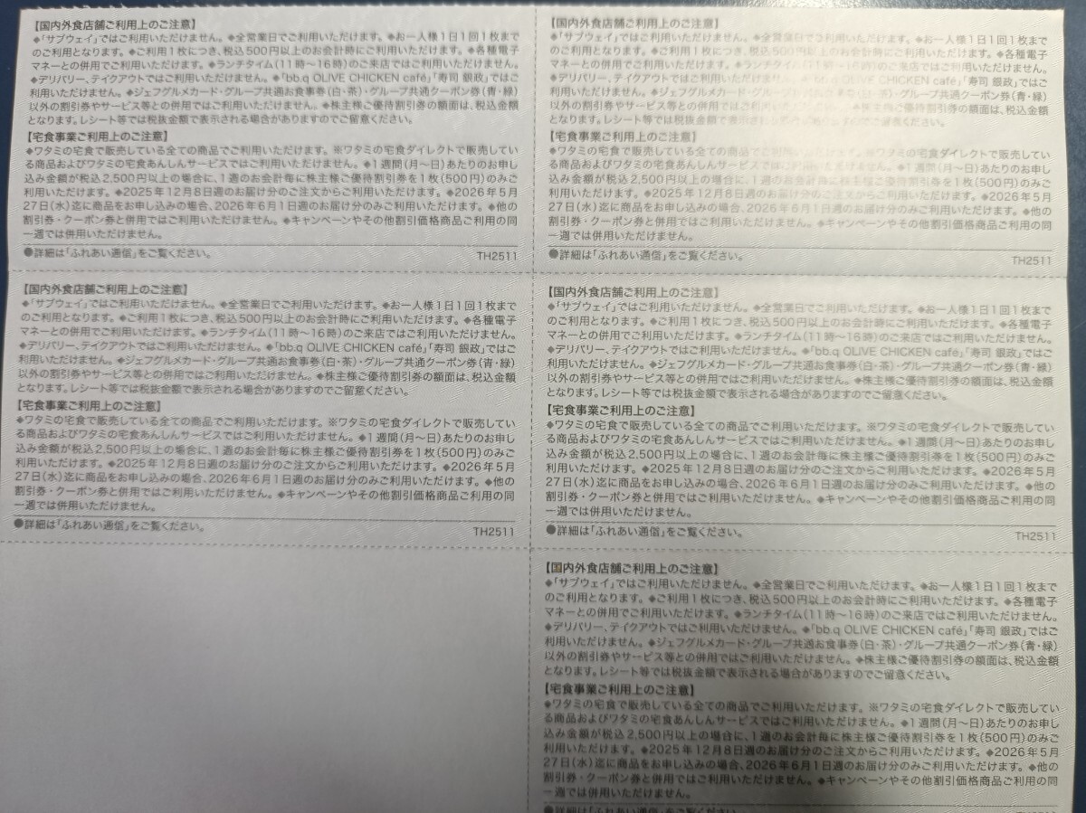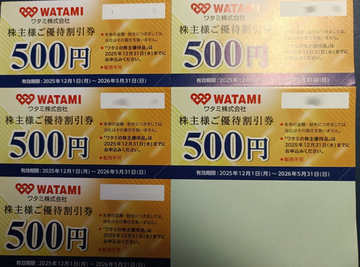 ワタミ株主優待券 2500円分(500円×5枚)  和民 ミライザカ 鳥メロ にくスタ等 有効期限は2026年5月31日