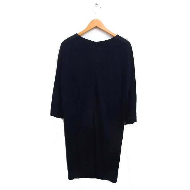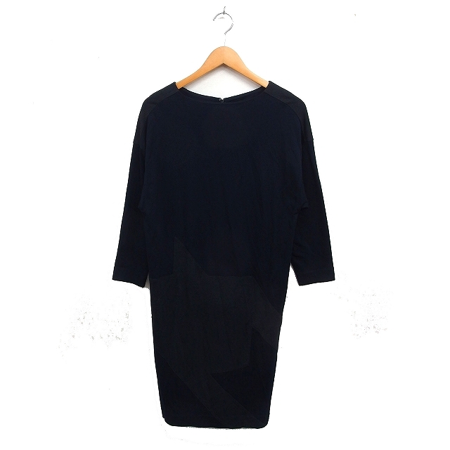 アイシービー iCB 切替 ワンピース 7分袖 ロング ボートネック 無地 9 ネイビー 紺 /FT17 レディース