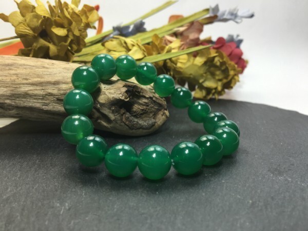 こちらは、12mm玉の緑瑪瑙を使用した天然石ブレスレットです。シンプルなデザインですのでどんなコーディネートとも合わせ易いブレスレットです。石大きさは12mm玉です。内径約17cmです。(サイズ変更の場合は取引ナビにてご連絡をお願いします。) 数に限りがございますので気になる方はお早めにどうぞ。