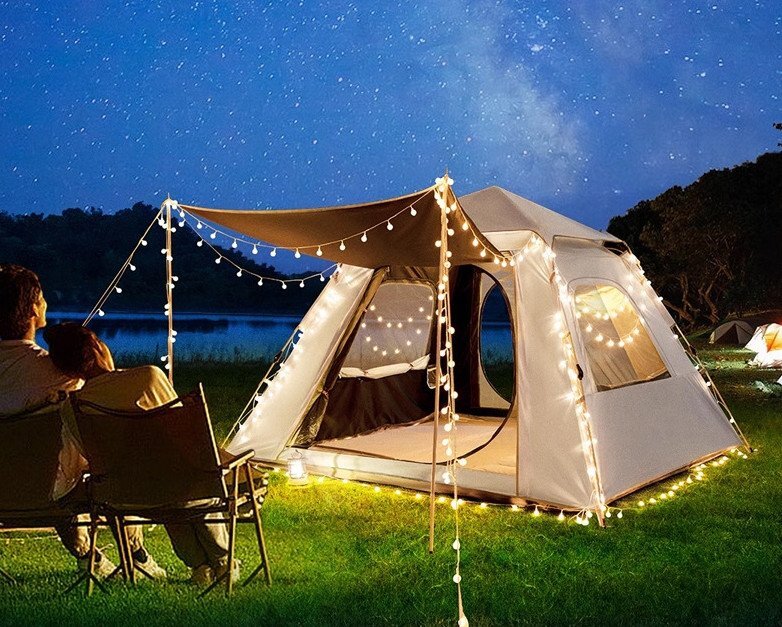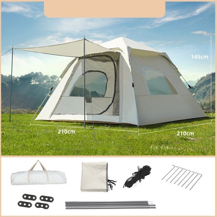 テント屋外3-4人キャンプ日よけ全自動折りたたみポータブルテント速開公園キャンプテント厚め野外雨水防止テント (A148)