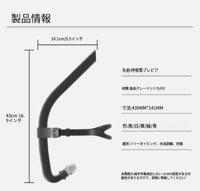 前置呼吸管自由形訓練専門水泳換気装備湿式半乾式調節ヘッドバンド呼吸管