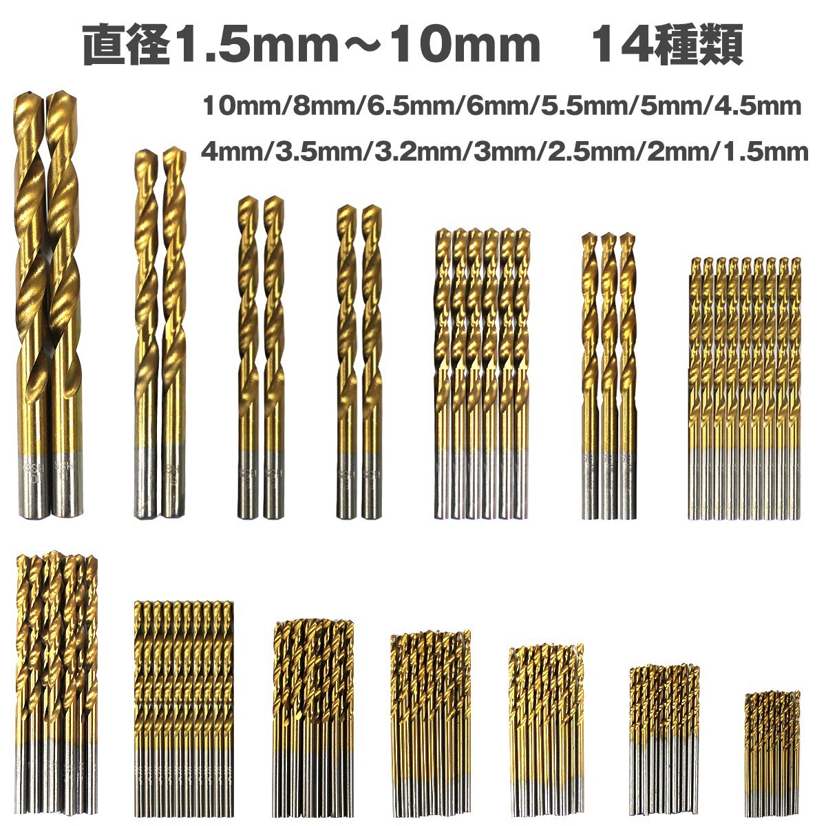 【送料250円】99本セット ドリル刃 ドリル ビット 鉄工用 1.5-10mm インパクト 電動 充電 ドライバー HSS鋼 チタンコート 丸軸 穴あけ キリ