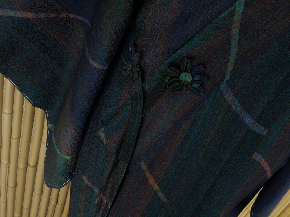 ●――――――――――――― 寸法(約) ―――――――――――――― ● 身丈(肩山総丈):100 cm ● 裄丈:65 cm(袖幅:34 cm) ● 袖丈:47 cm ● 前幅:21.5 cm ● 後幅:29.5 cm