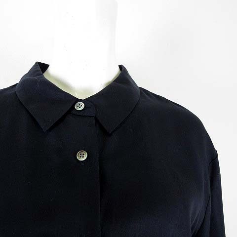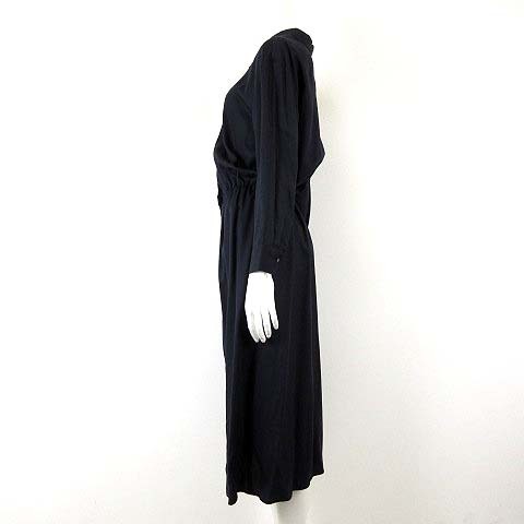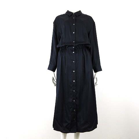 ナノユニバース nano universe シャツワンピース ロング ブラウジング ドロップショルダー 長袖 M 紺 ネイビー レディース